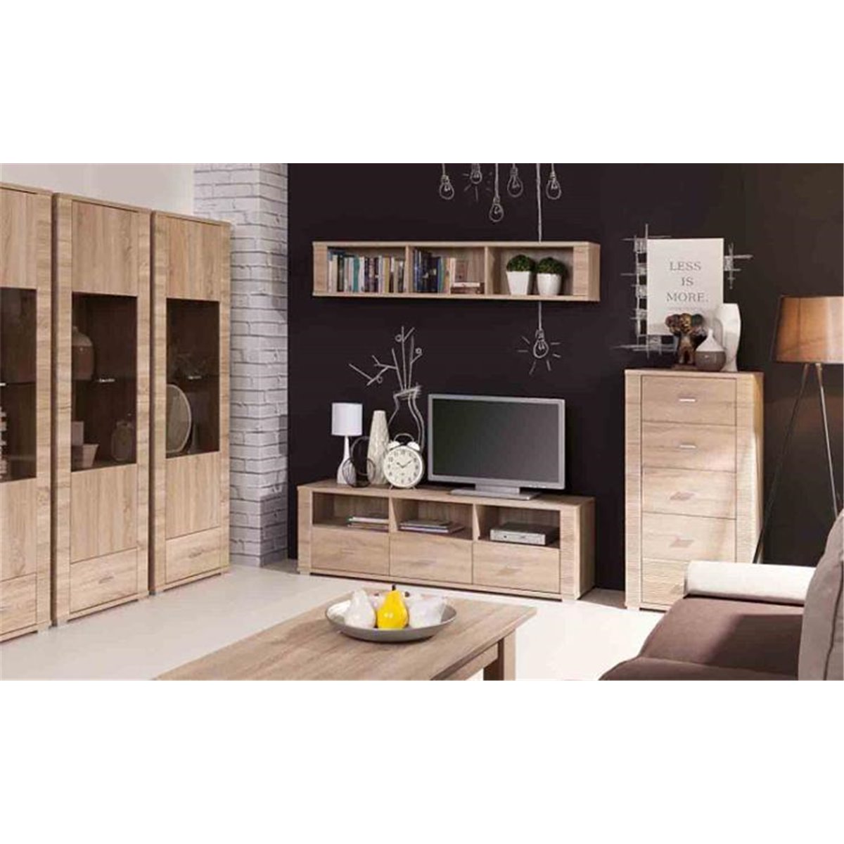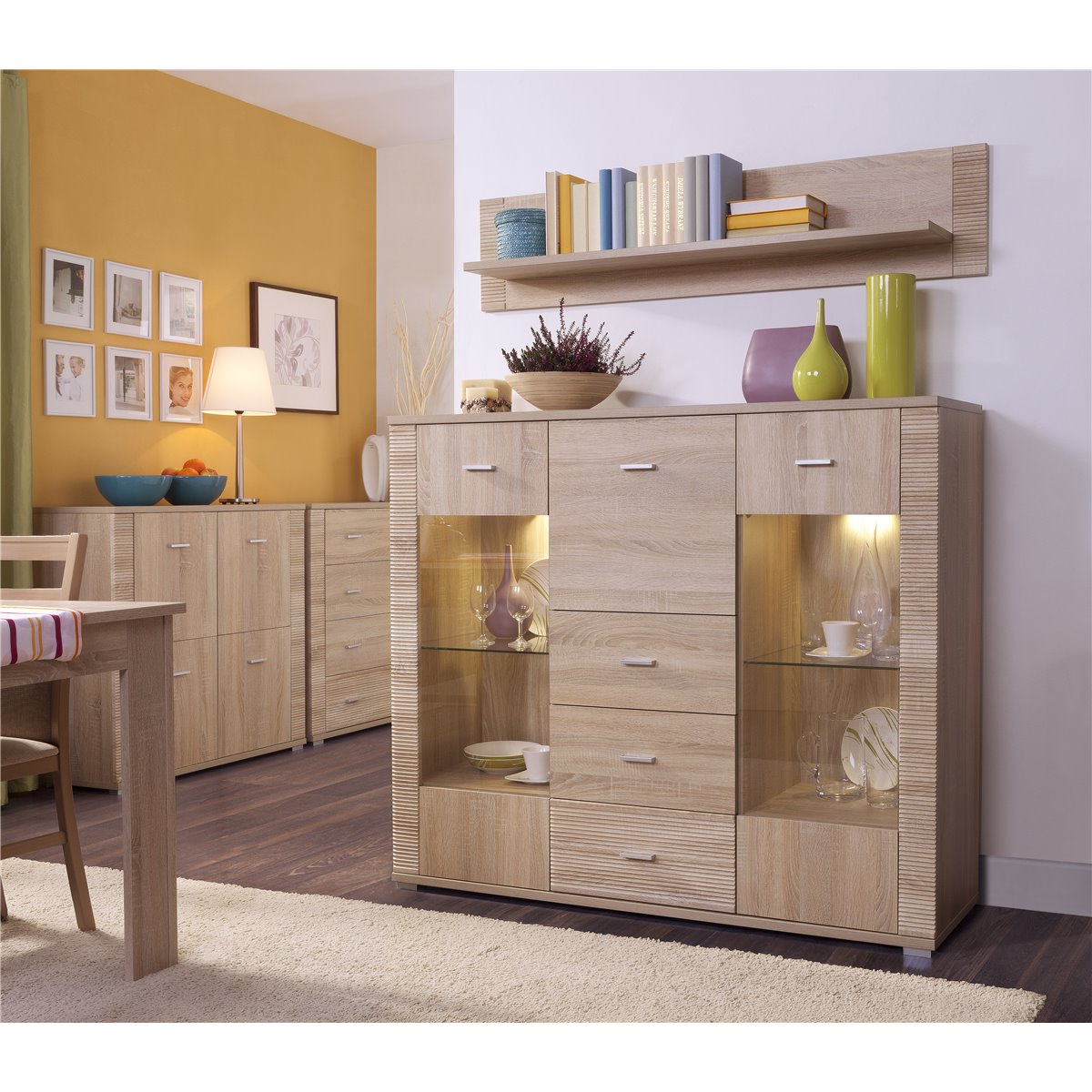 Elegancja jasnego dekoru oraz wyrazistość ryflowanych zdobień to charakterystyczny wyróżnik tej kolekcji mebli. Kolor tych mebli naturalnie łączy się z szeroką gamą barw farb oraz tapet jakie możemy zastosować na ścianach naszych pomieszczeń. Ergonomiczne uchwyty oraz nóżki mebli w kolorze matowej stali, idealnie komponują się z kolorystyką brył stanowiąc ich subtelne zdobienie. Kształt oraz rozmiar uchwytów zostały tak zaprojektowane, aby stanowiły jedynie delikatny akcent podnoszący walory estetyczne każdej bryły z kolekcji GRESS. Do mebli w jasnym odcieniu idealnie pasują dodatki w ciemnych kolorach, tworzą wówczas kontrast podkreślający charakter zarówno modułów, jak i dekoracji.