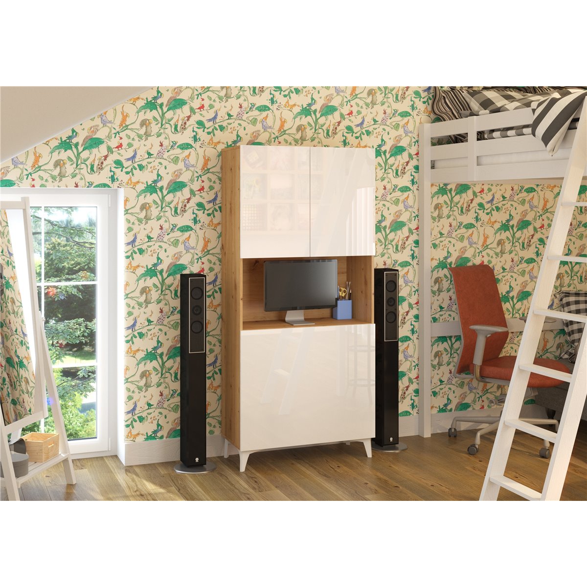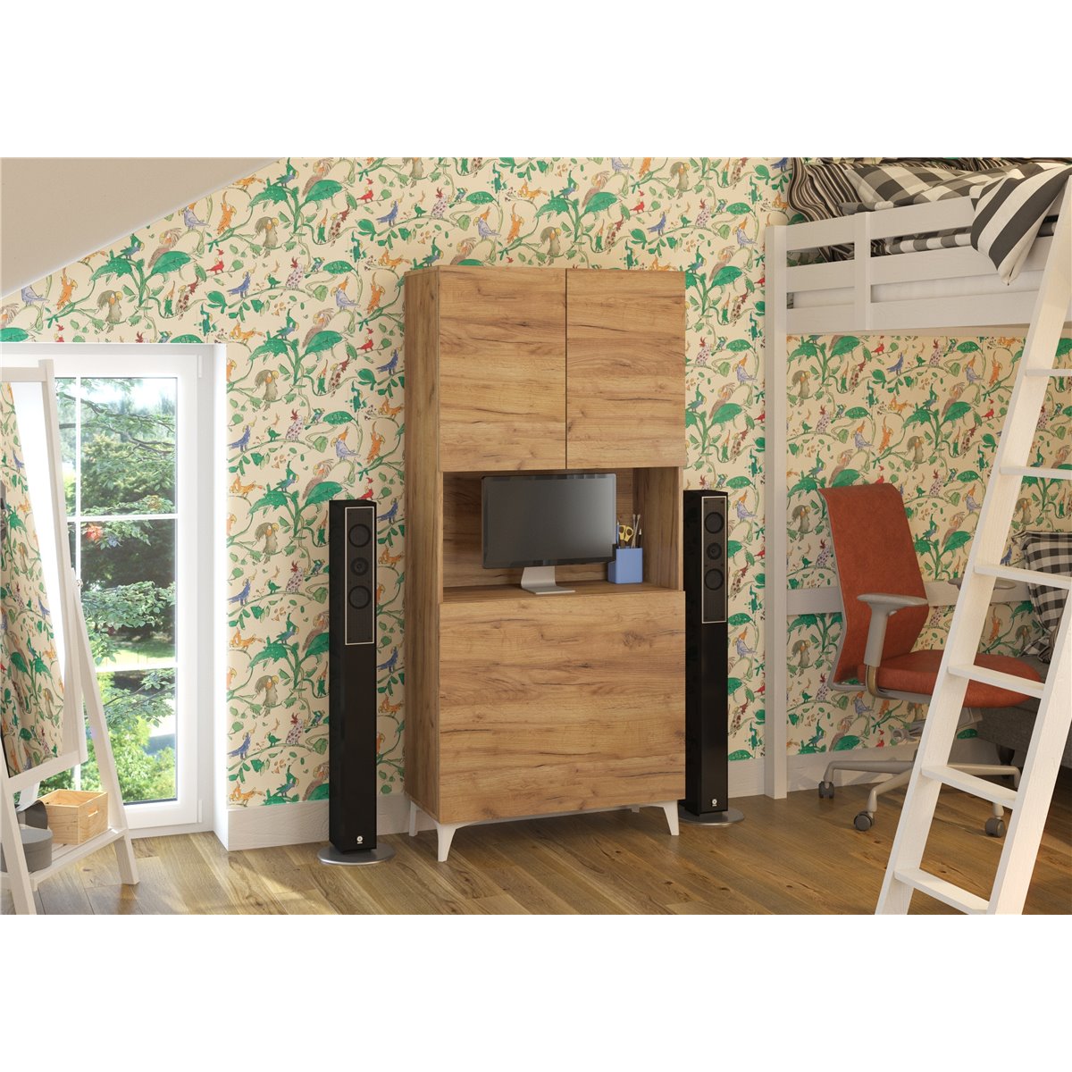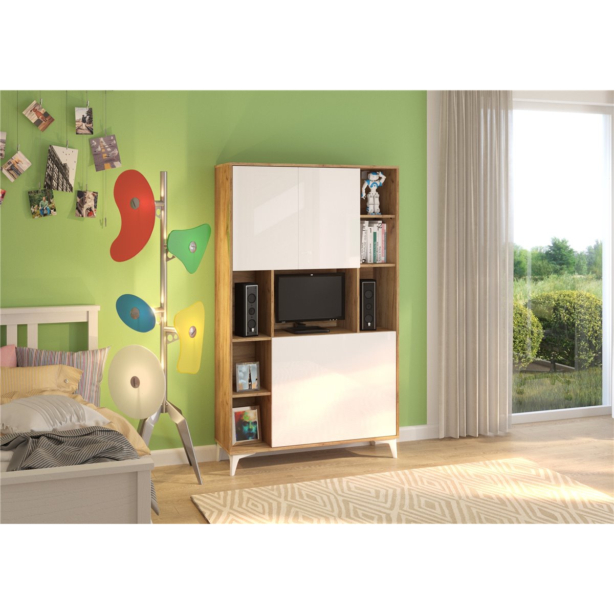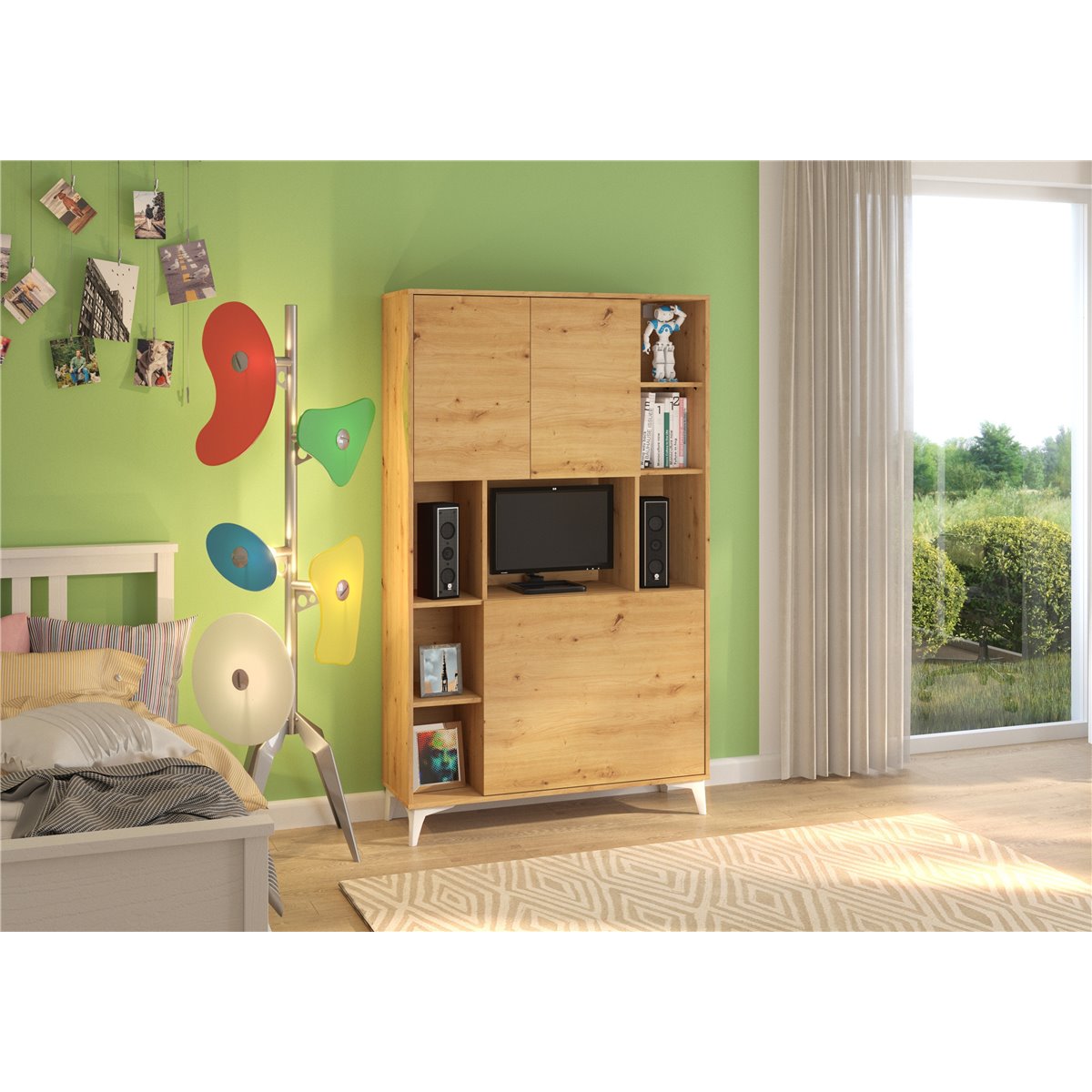 Wysoki regał to bardzo funkcjonalny mebel, który pozwala na zamontowanie wielu półek. To sprawia, że regał pomieści zróżnicowane przedmioty, które chcemy z jakiegoś, dowolnego powodu wyeksponować. W naszej ofercie znajdą państwo regał otwarty, jak też zamknięte jego formy. W tej drugiej formule zamiast półek mamy do dyspozycji zamykane szuflady, które pozwalają ukryć zawartość przechowywaną wewnątrz mebla. Sam regał może występować samodzielnie lub zostać dołączony do całego kompletu mebli. Jego olbrzymią zaletą jest to, że można go łatwo dopasować i wręcz wpasować, między istniejącą już zabudowę. Regały sprawdzają się w każdym pomieszczeniu. Idealnie sprawdzą się w salonie, ale też w pokoju dziecięcym czy w gabinecie. Oferowane przez nas produkty, zostały wykonane z materiałów najwyższej jakości, co jest gwarancją, że bardzo długo zachowywać będą pierwotne, fabryczne właściwości, co w praktyce przekłada się na długą trwałość mebla, odporność na zniszczenia i jego wysoką funkcjonalność.
