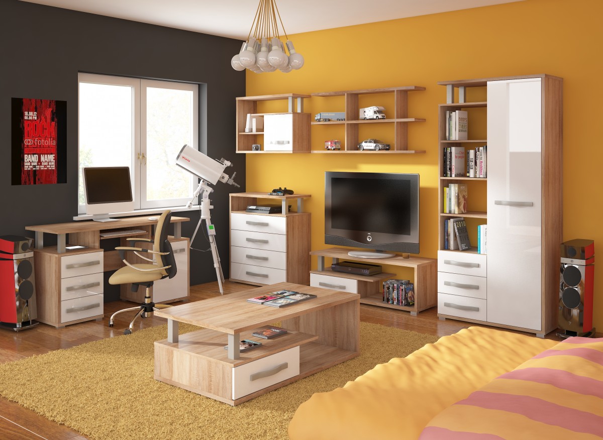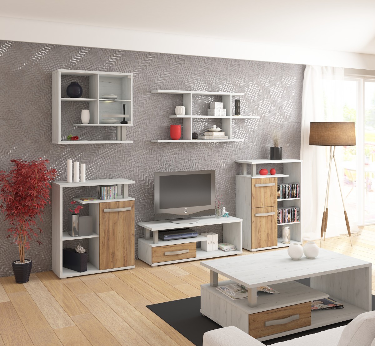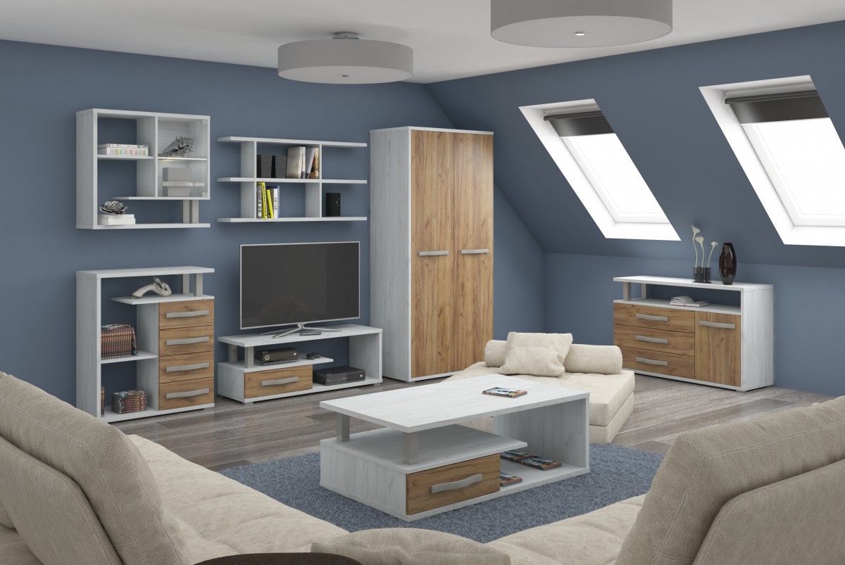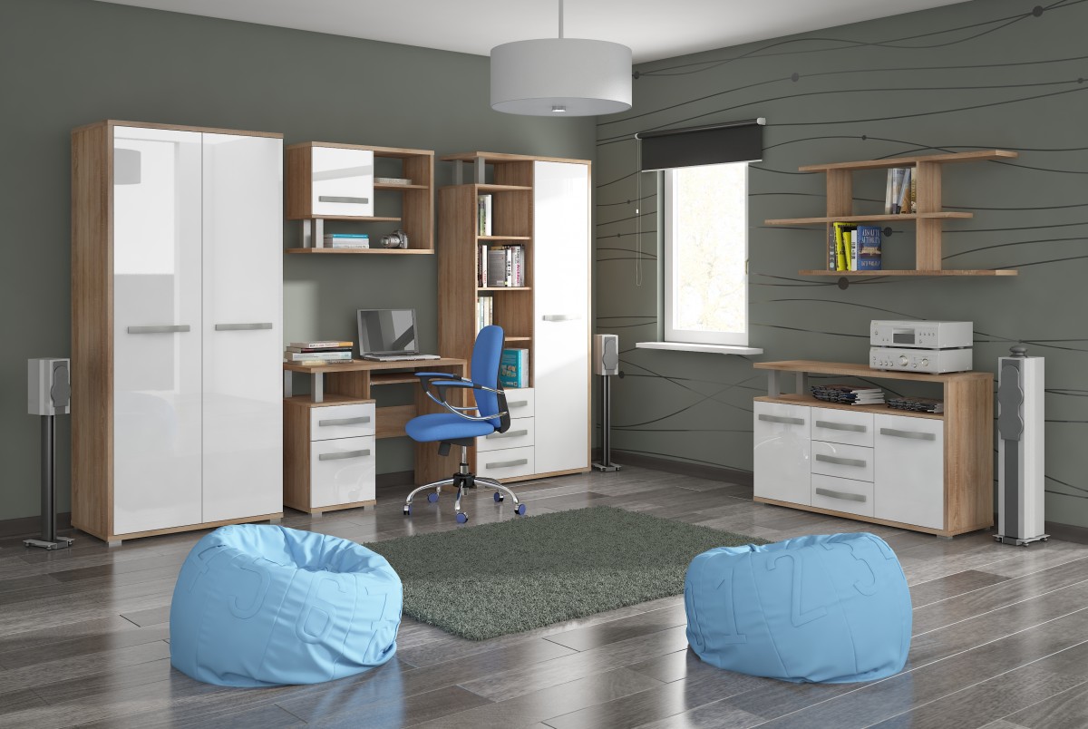 Kolekcja ANGEL producenta MEBLOCROSS to nowoczesne meble przeznaczone do aranżacji pokoju dziennego lub pokoju młodzieżowego. System mebli został wykonany z wysokiej jakości płyty laminowanej. Kolekcja została wykonana w kilku wersjach kolorystycznych do wyboru, dzięki czemu na pewno znajdziemy coś dla siebie. Dzięki użytym do produkcji materiałom mamy pewność, że meble będą nam służyć przez długie lata.