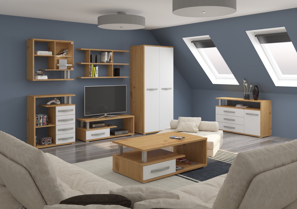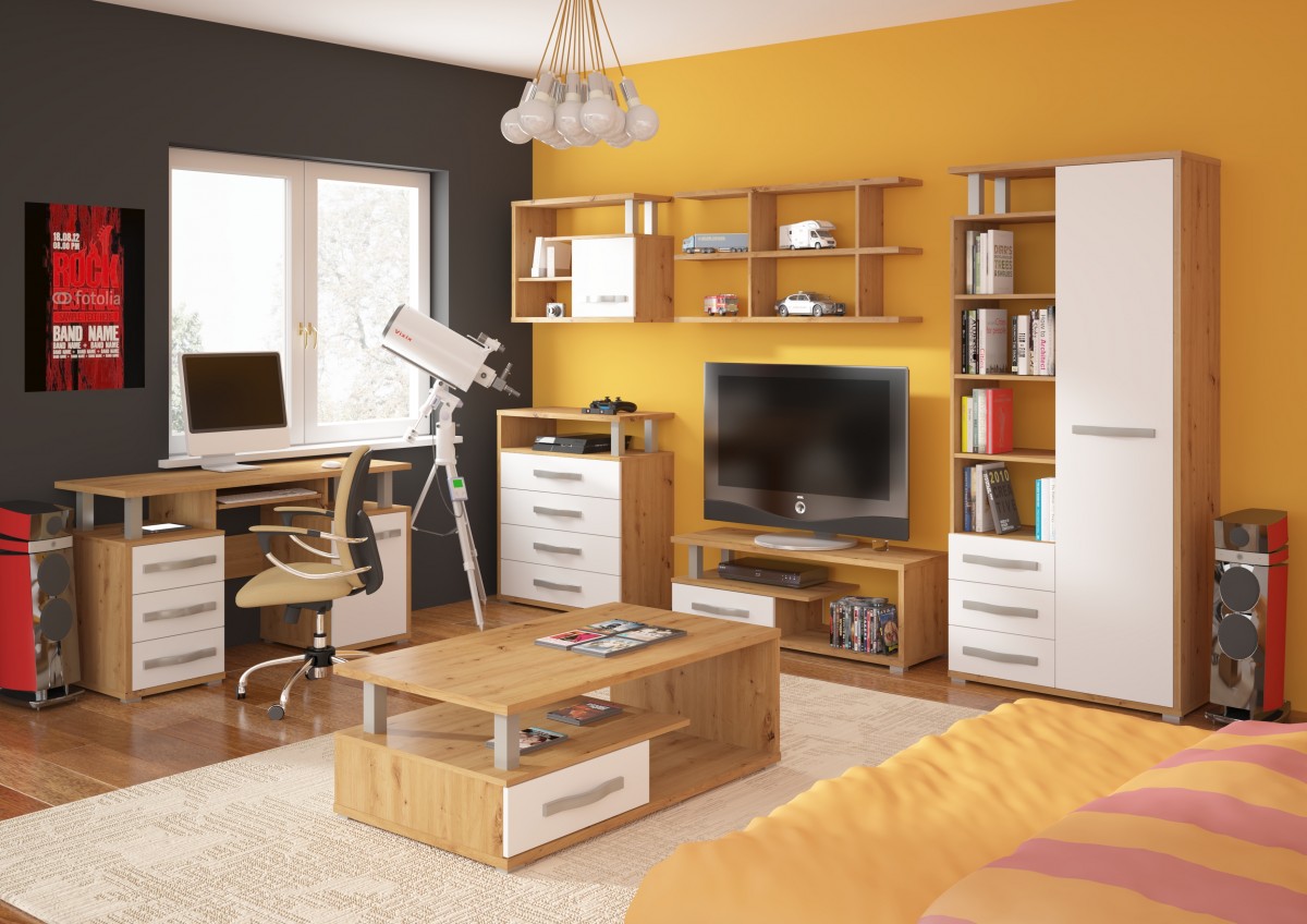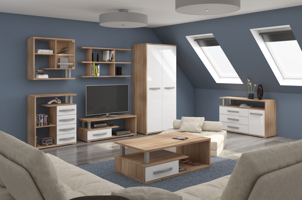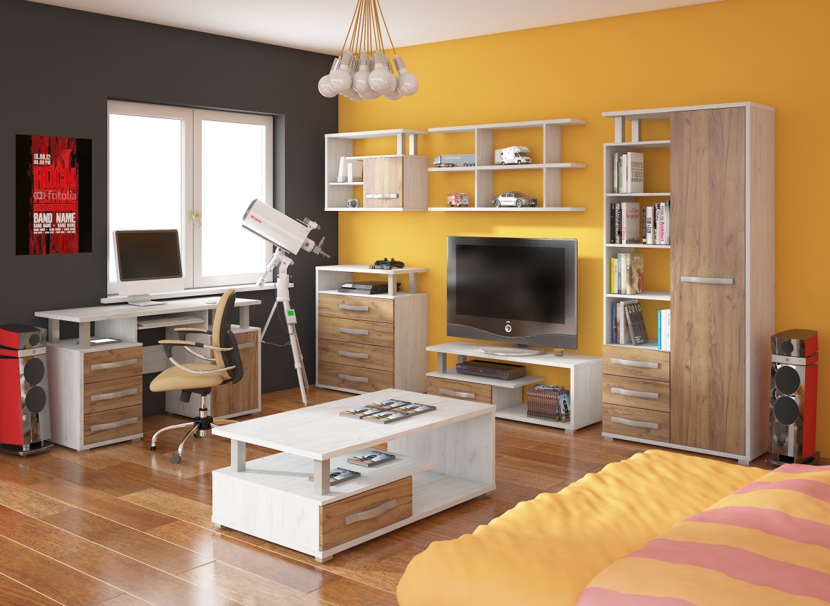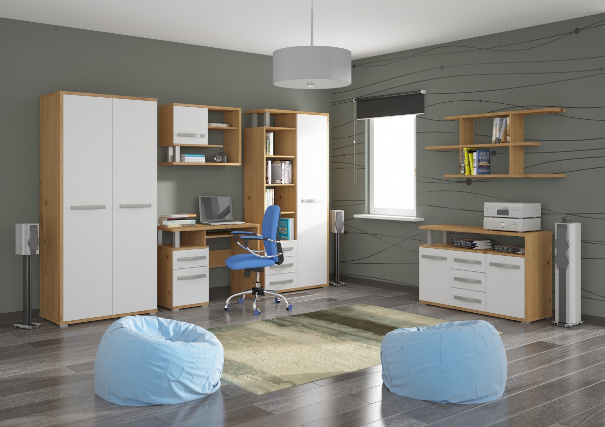 Kolekcja ANGEL producenta MEBLOCROSS to nowoczesne meble przeznaczone do aranżacji pokoju dziennego lub pokoju młodzieżowego. System mebli został wykonany z wysokiej jakości płyty laminowanej. Kolekcja została wykonana w kilku wersjach kolorystycznych do wyboru, dzięki czemu na pewno znajdziemy coś dla siebie. Dzięki użytym do produkcji materiałom mamy pewność, że meble będą nam służyć przez długie lata.