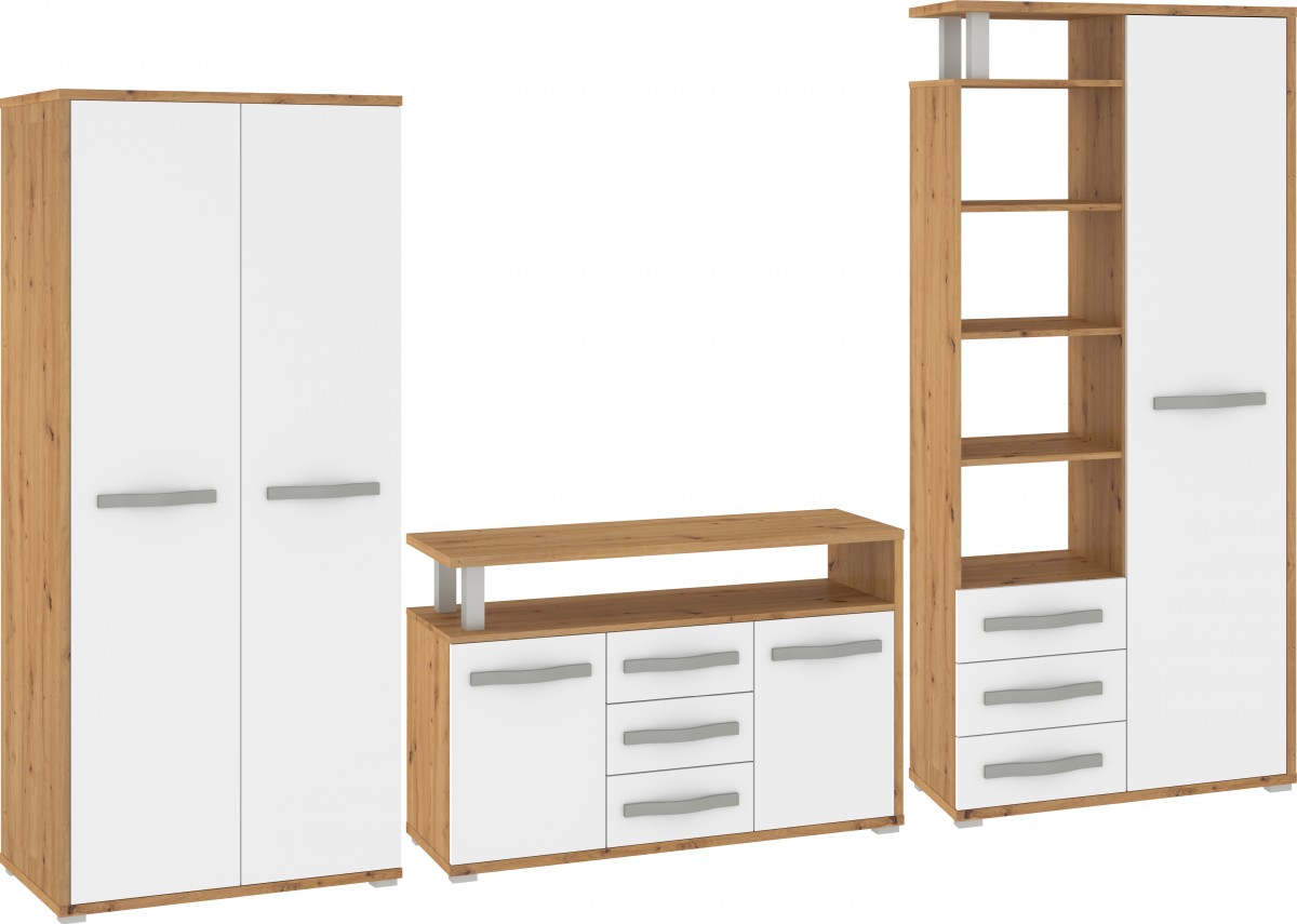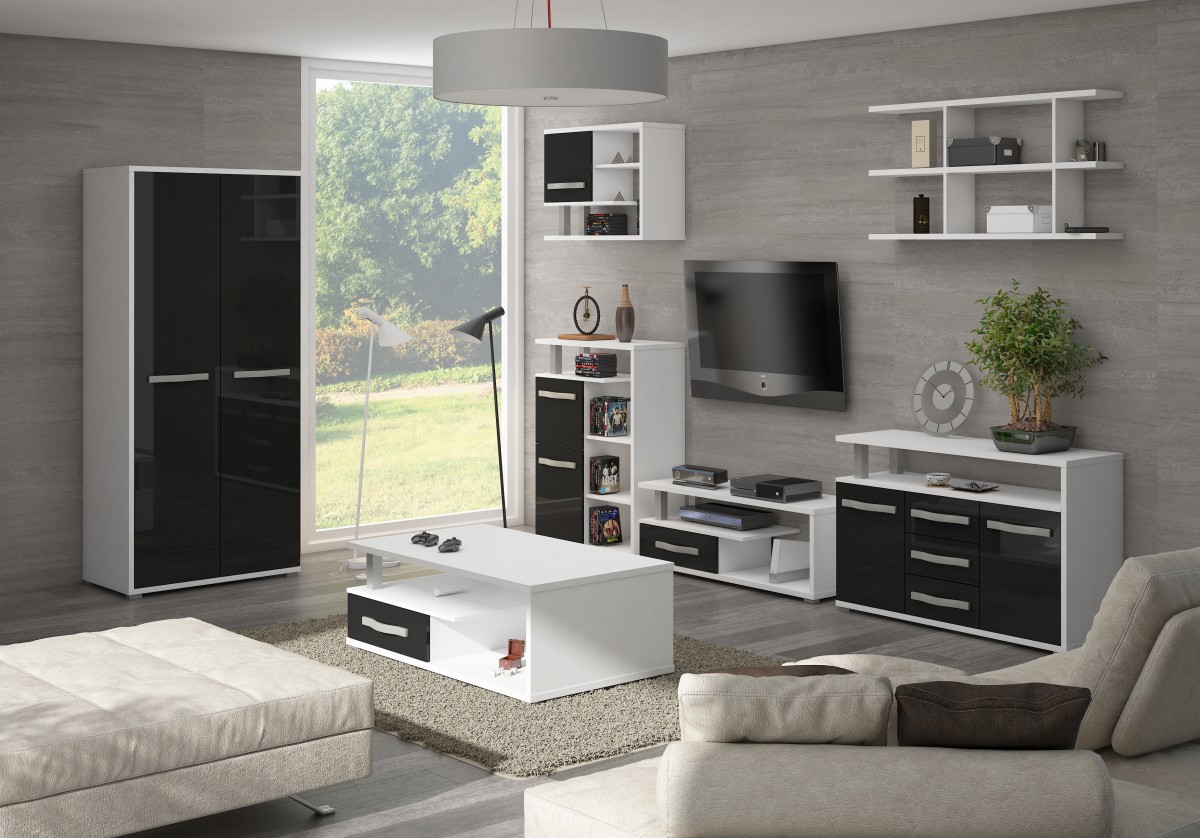 Meblościanka z kolekcji ANGEL to praktyczny zestaw mebli w szerokiej gamie kolorów do wyboru, który idealnie wpasuje się w każdą kolorystyke pomieszczenia.