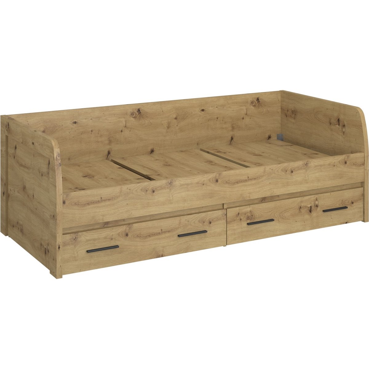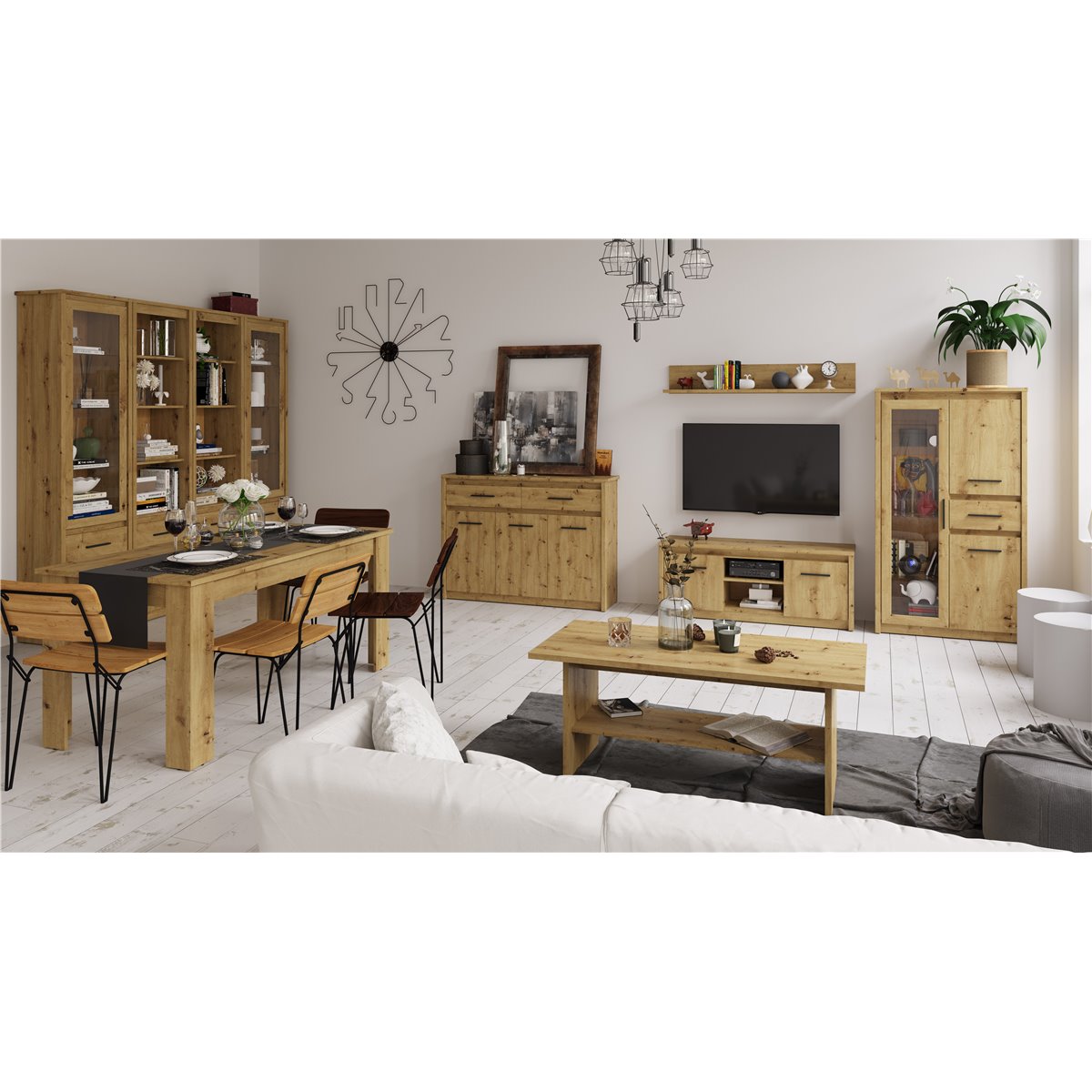 Biurko wyposażone zostało w 1-drzwiowy front oraz praktyczną szufladę. Czarne metalowe uchwyty podkreślają styl mebla. Pogrubiane boki i blat stanowią gustowną oprawę dla brył. Prosta forma mebli sprawia, że aranżacje będą niepowtarzalne.