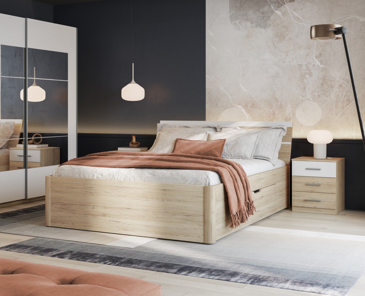 Meble BETA zostały zaprojektowane z myślą o wygodzie codziennego użytkowania – pojemne szafy i komody zapewniają dużo miejsca do przechowywania, a solidne łóżka gwarantują komfortowy wypoczynek. To idealna propozycja dla osób, które cenią praktyczne rozwiązania, estetykę oraz możliwość elastycznego komponowania własnego zestawu mebli do sypialni.