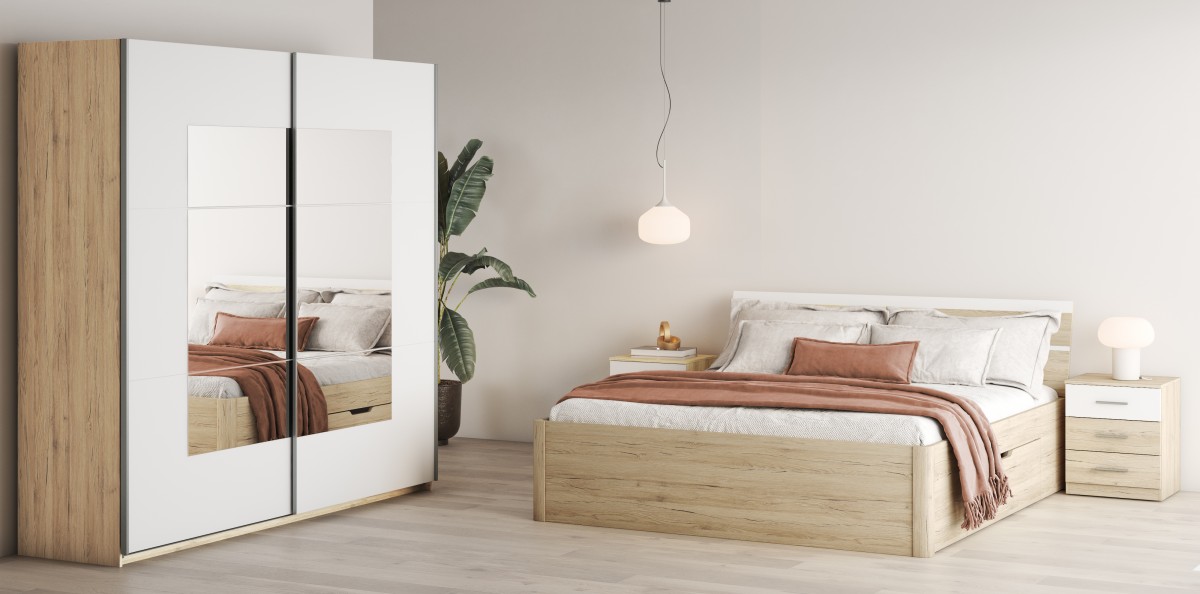 Kolekcja mebli BETA pozwala na stworzenie komfortowej, spójnej i estetycznej aranżacji wnętrza. W ofercie znajdują się łóżka, komody oraz szafy w różnych rozmiarach, dzięki czemu można swobodnie dopasować zestaw do wielkości pomieszczenia oraz indywidualnych potrzeb użytkownika.