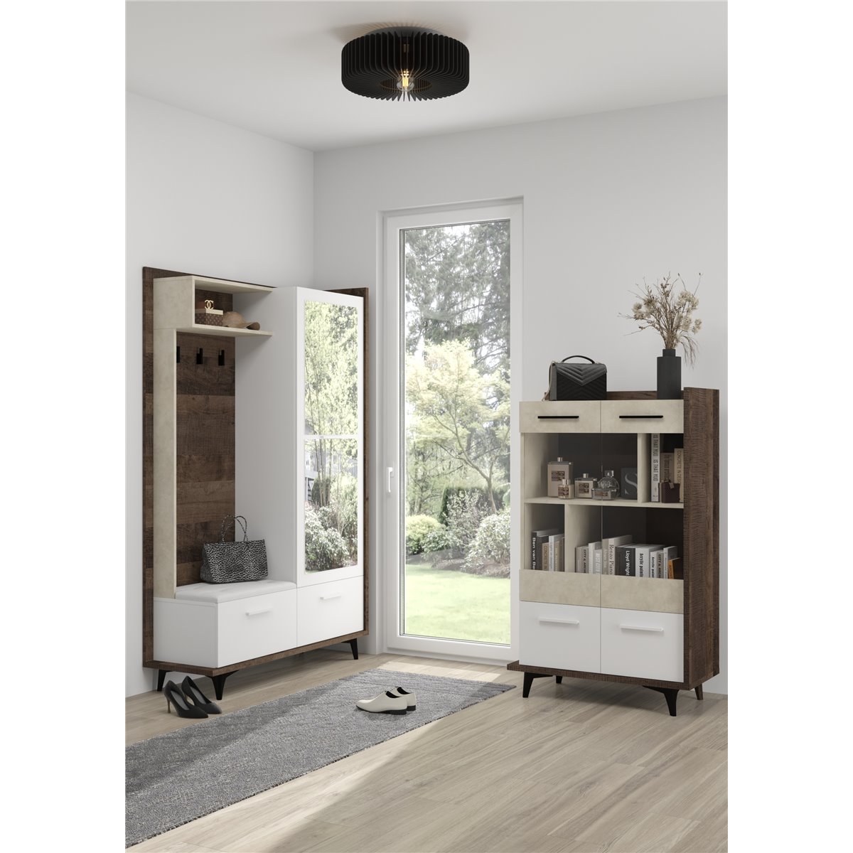 Przedpokój BOX składa się z części 3-drzwiowej oraz lustra na jednym z frontów. Wewnątrz znajduje się praktyczny drążek na wieszaki. Zamontowany dodatkowo cichy domyk sprawia, że drzwiczki zamykają się płynnie i cicho. Nowoczesna forma sprawi, że wnętrze nabierze nowego charakteru. Dzięki szerokiej gamie kolorów do wyboru na pewno wybierzesz coś dla siebie.