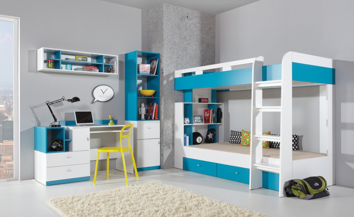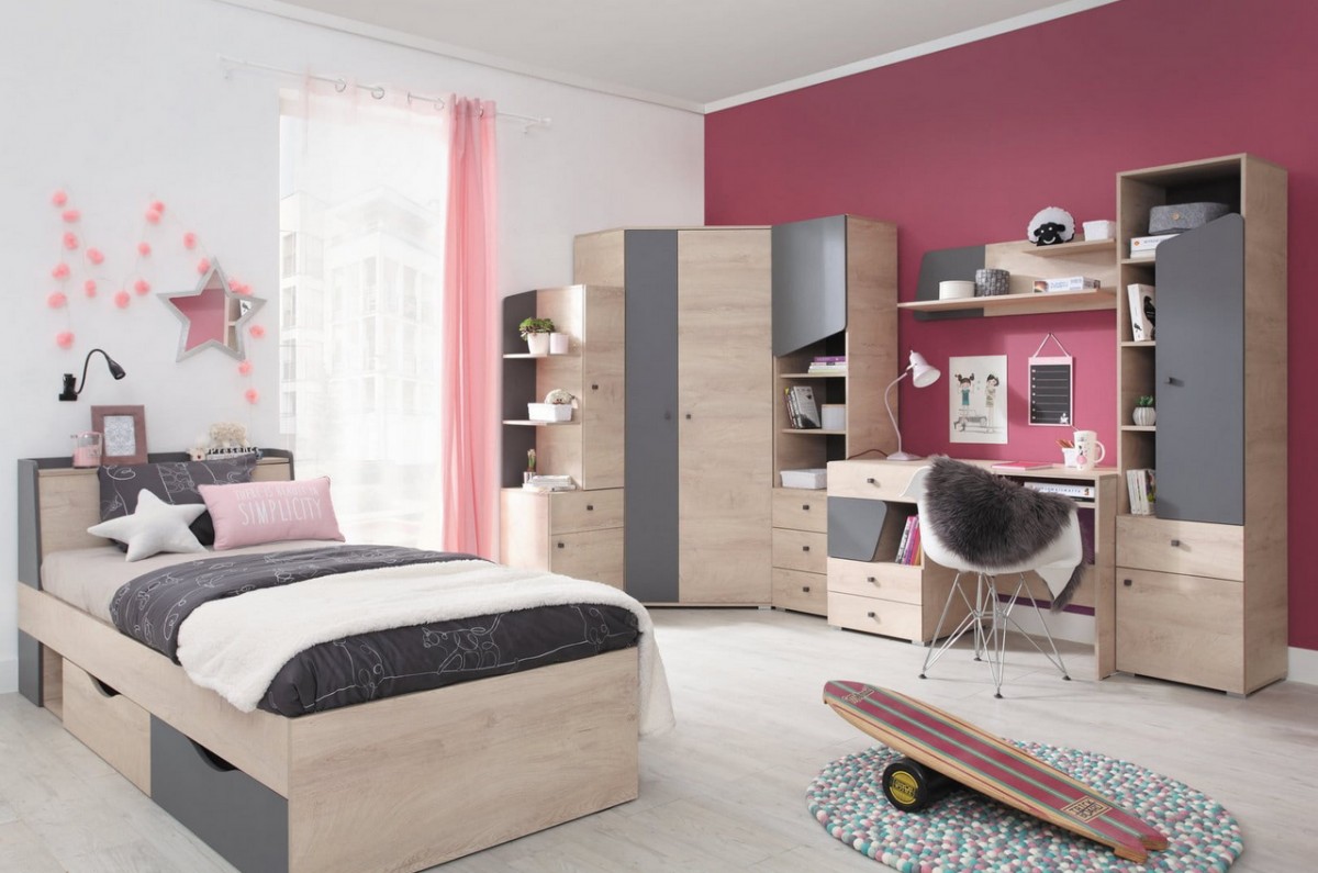 Funkcjonalność - meble oferują dużo miejsca do przechowywania, ergonomiczne rozwiązania oraz przestrzeń do nauki i odpoczynku.