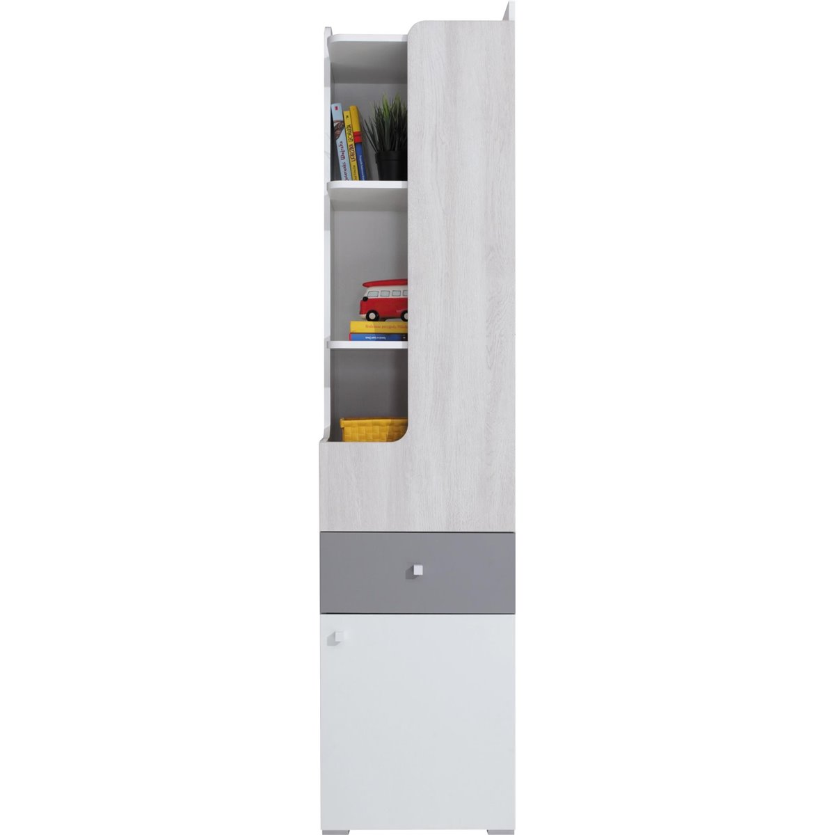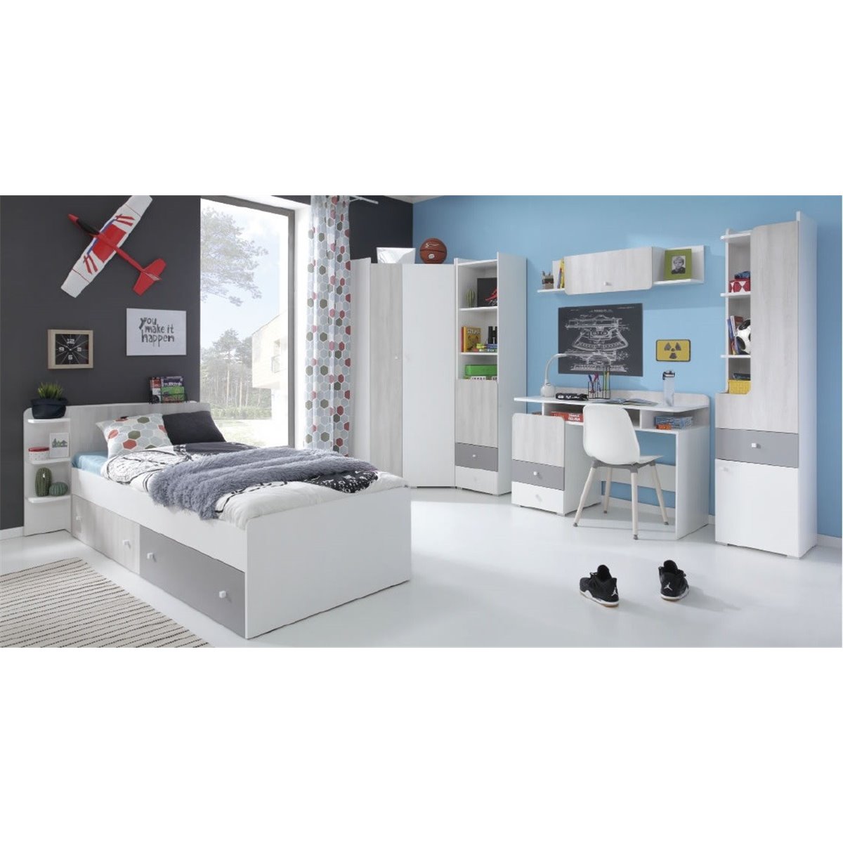 System mebli młodzieżowych COMO to nowoczesna kolekcja zaprojektowana z myślą o funkcjonalności i estetyce, idealna do aranżacji pokoju nastolatka. Charakteryzuje się stonowaną kolorystyką, łączącą jasne wybarwienie Białego Lux, naturalność Dębu Wilton Białego oraz neutralna Szarość, co nadaje wnętrzu harmonii i nowoczesnego wyglądu.
