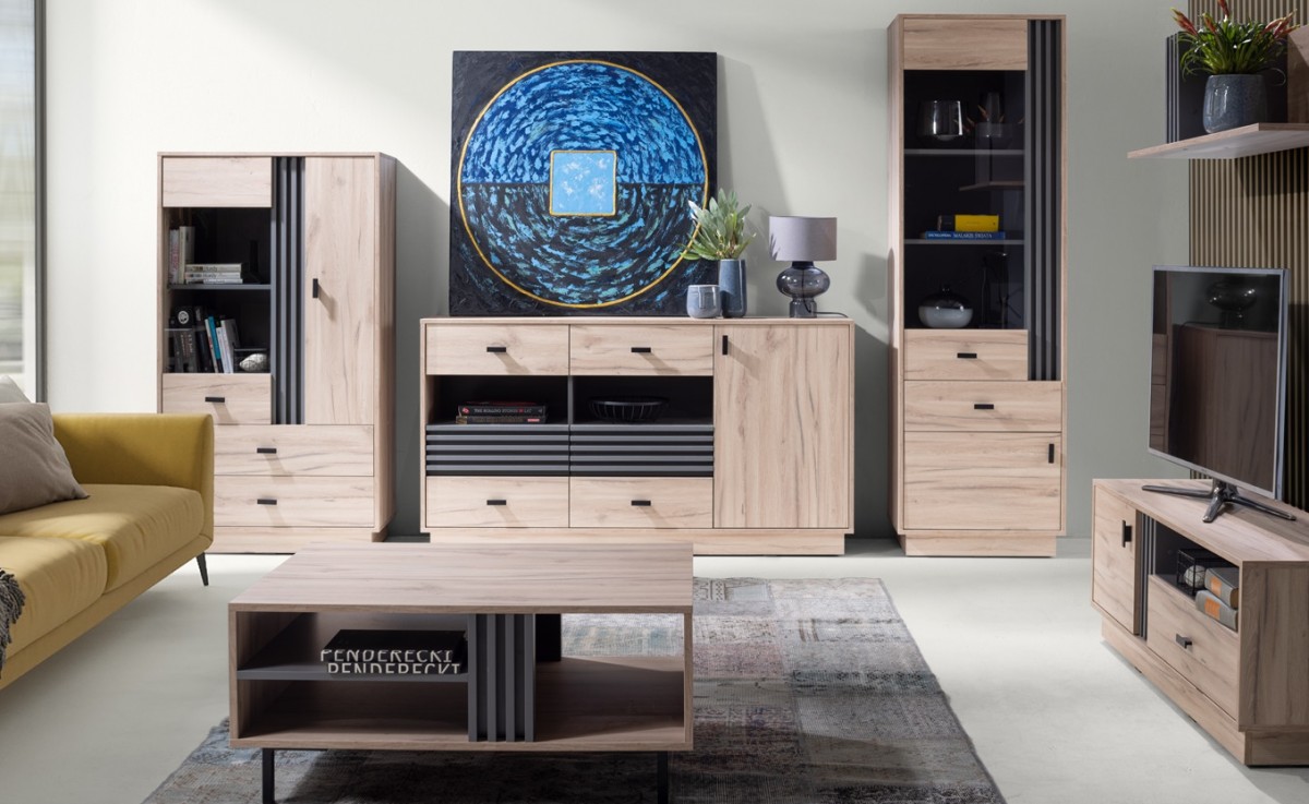 Estetyka i detale – minimalistyczne uchwyty, subtelne linie i kontrastowe wykończenia nadają meblom nowoczesnego, a zarazem ponadczasowego charakteru.