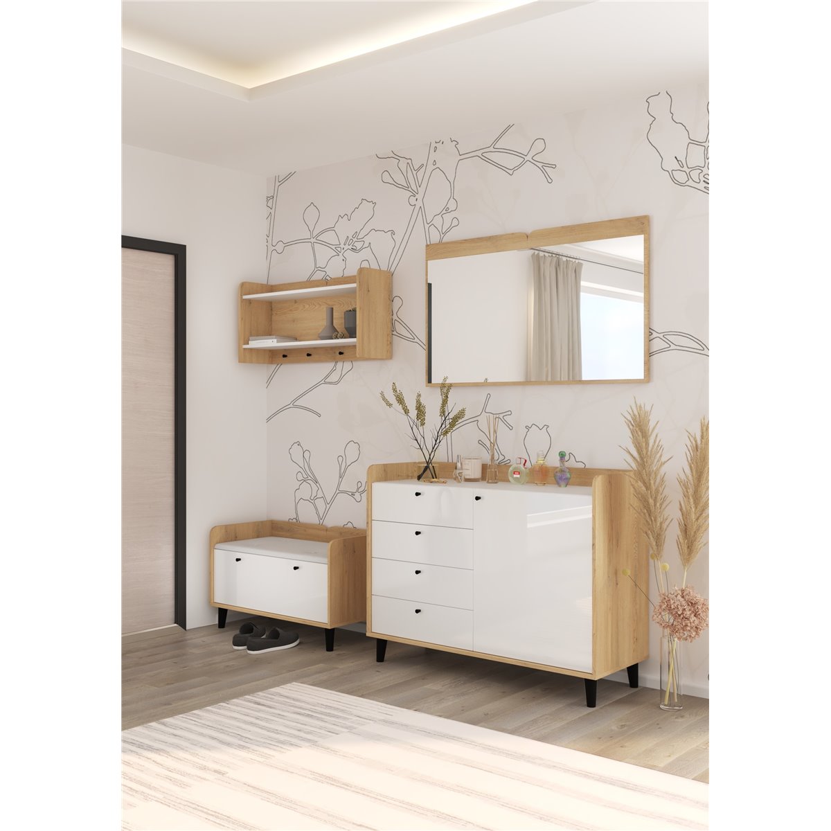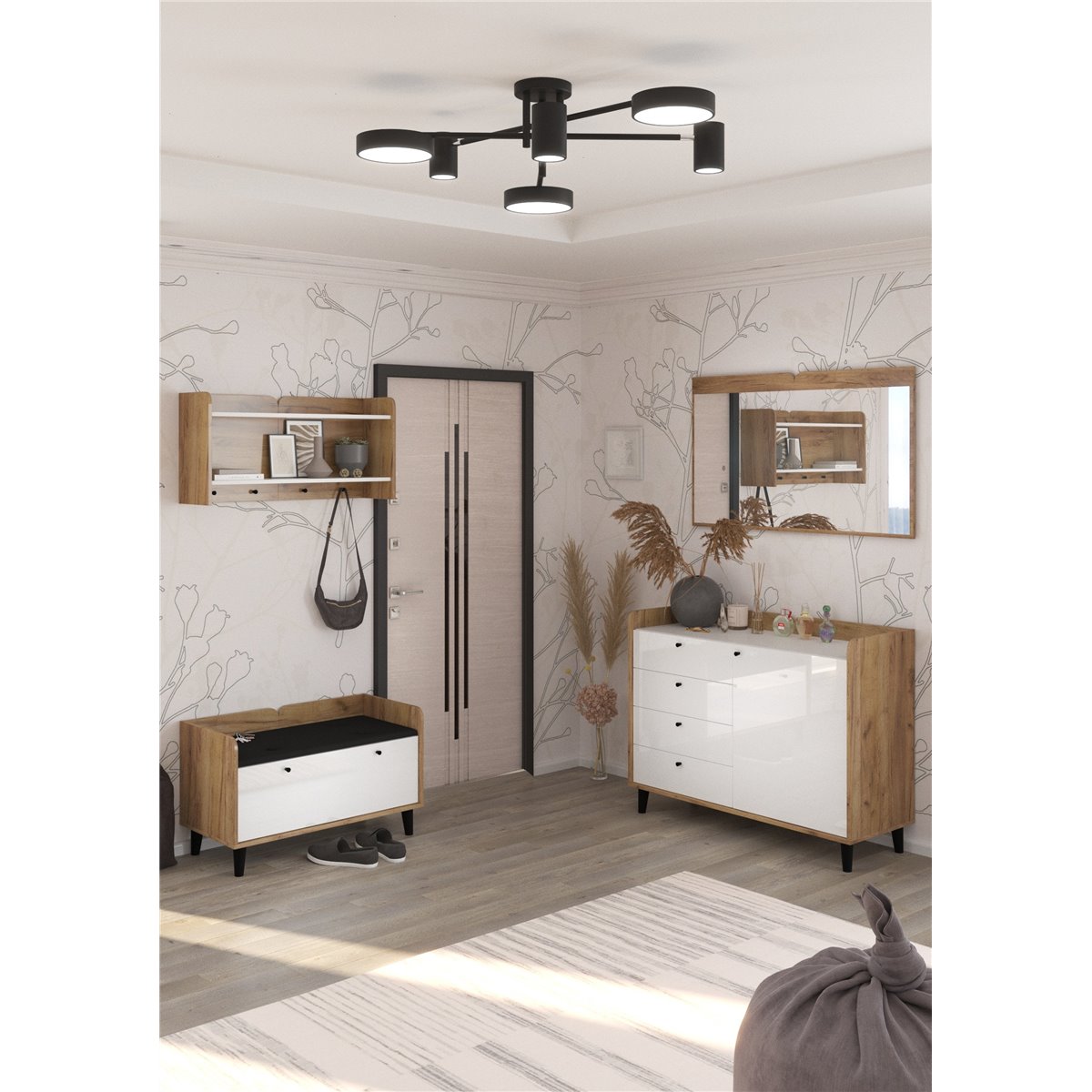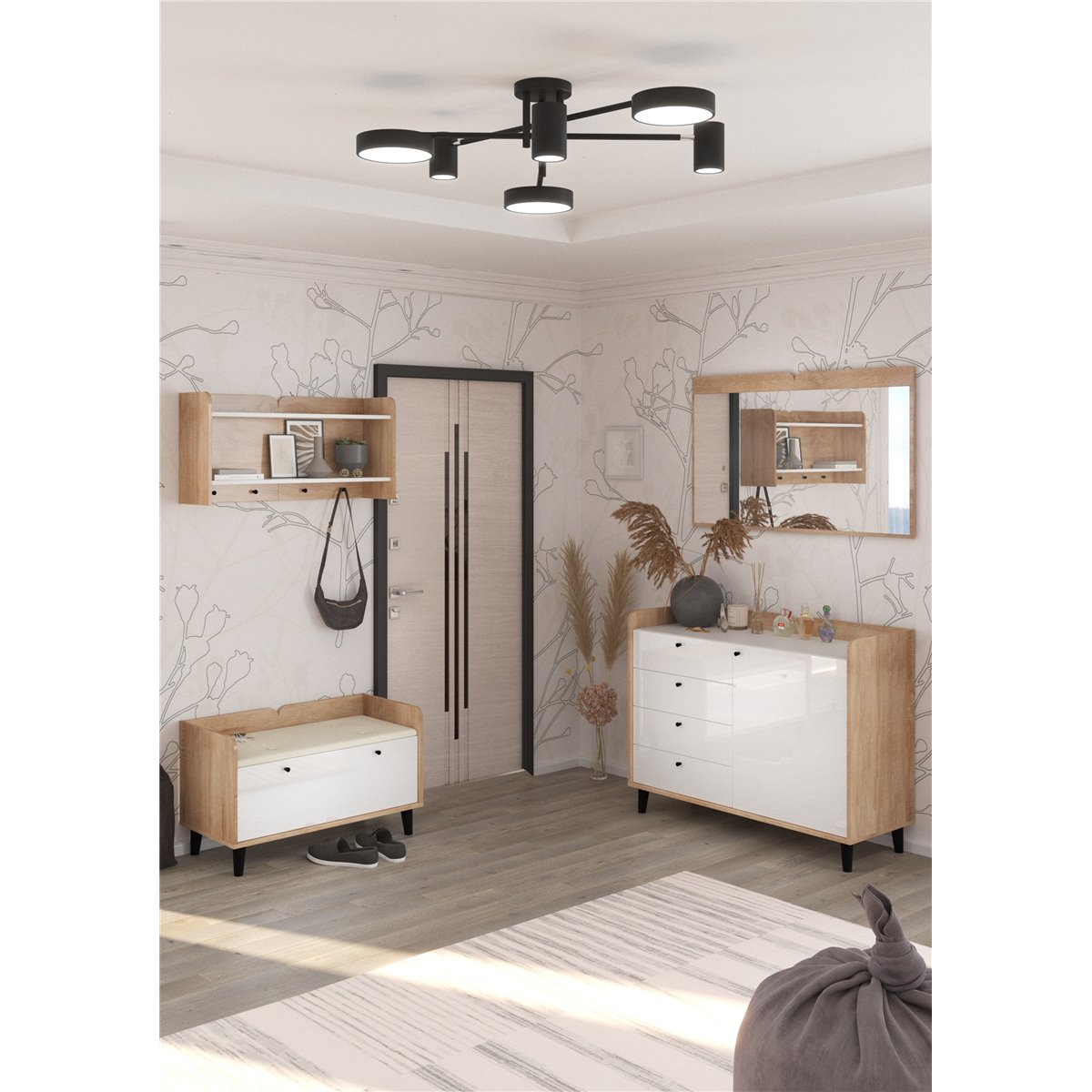 Kolekcja DOLCE to wysokiej jakości meble pokojowe. Połączenie minimalizmu, nowoczesności i klasyki. Zestawy brył wykonane są z wysokiej jakości materiałów; płyty meblowe użyte do produkcji zostały wzmocnione obrzeżami z ABS, a nóżki w meblach stojących wykonane są z litego drewna. Opcjonalnie można dokupić oświetlenie LED w rożnych kolorach.