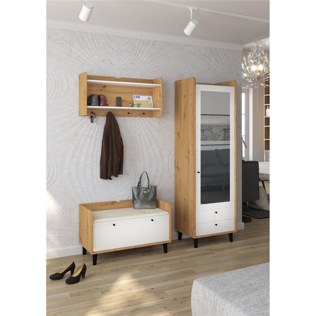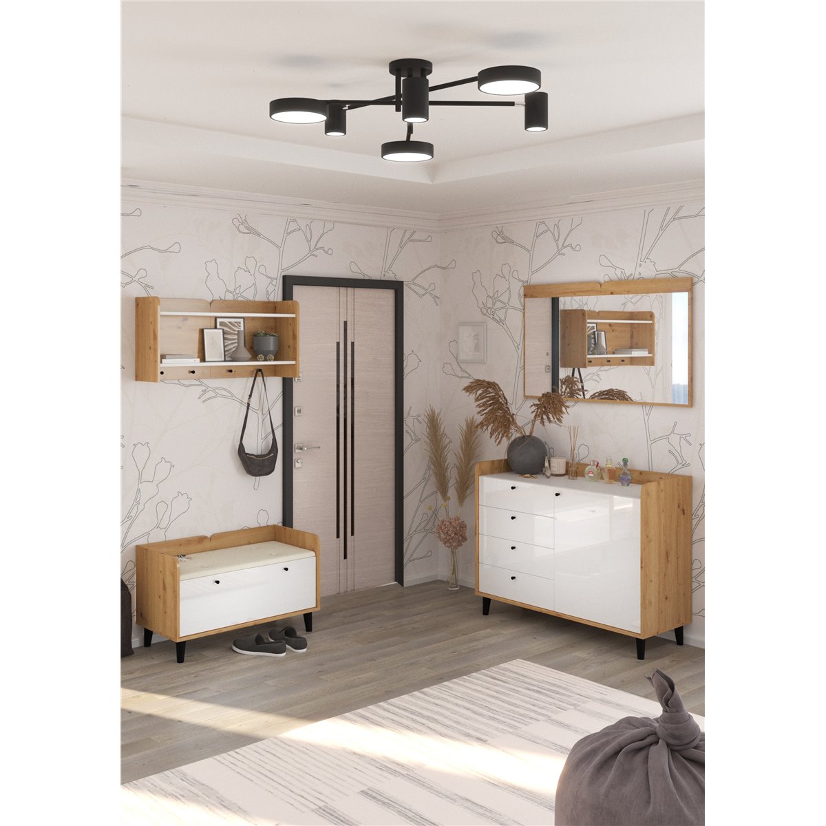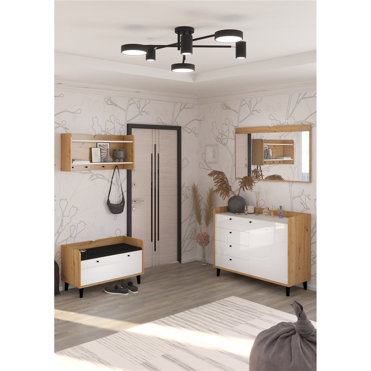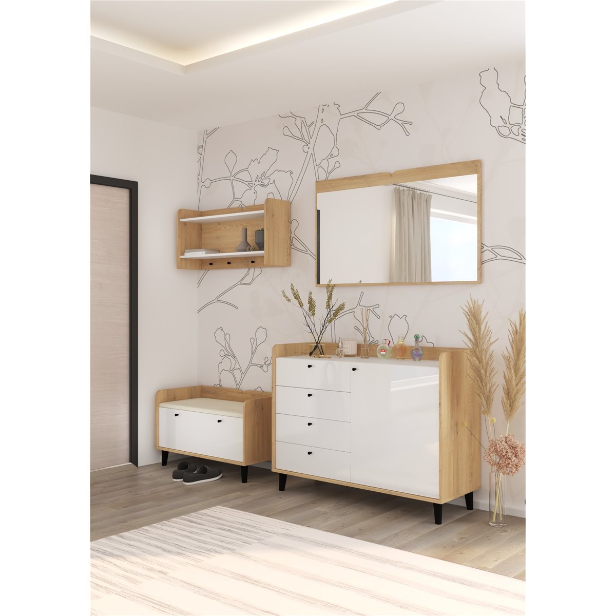 Kolekcja DOLCE to wysokiej jakości meble pokojowe. Połączenie minimalizmu, nowoczesności i klasyki. Zestawy brył wykonane są z wysokiej jakości materiałów; płyty meblowe użyte do produkcji zostały wzmocnione obrzeżami z ABS, a nóżki w meblach stojących wykonane są z litego drewna. Opcjonalnie można dokupić oświetlenie LED w rożnych kolorach.