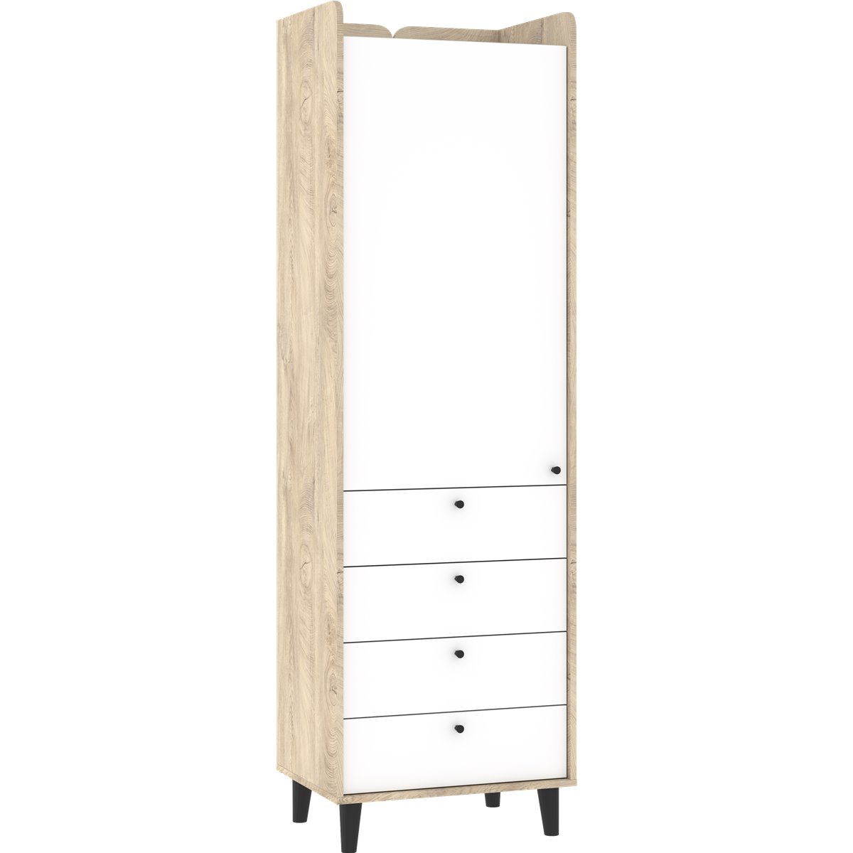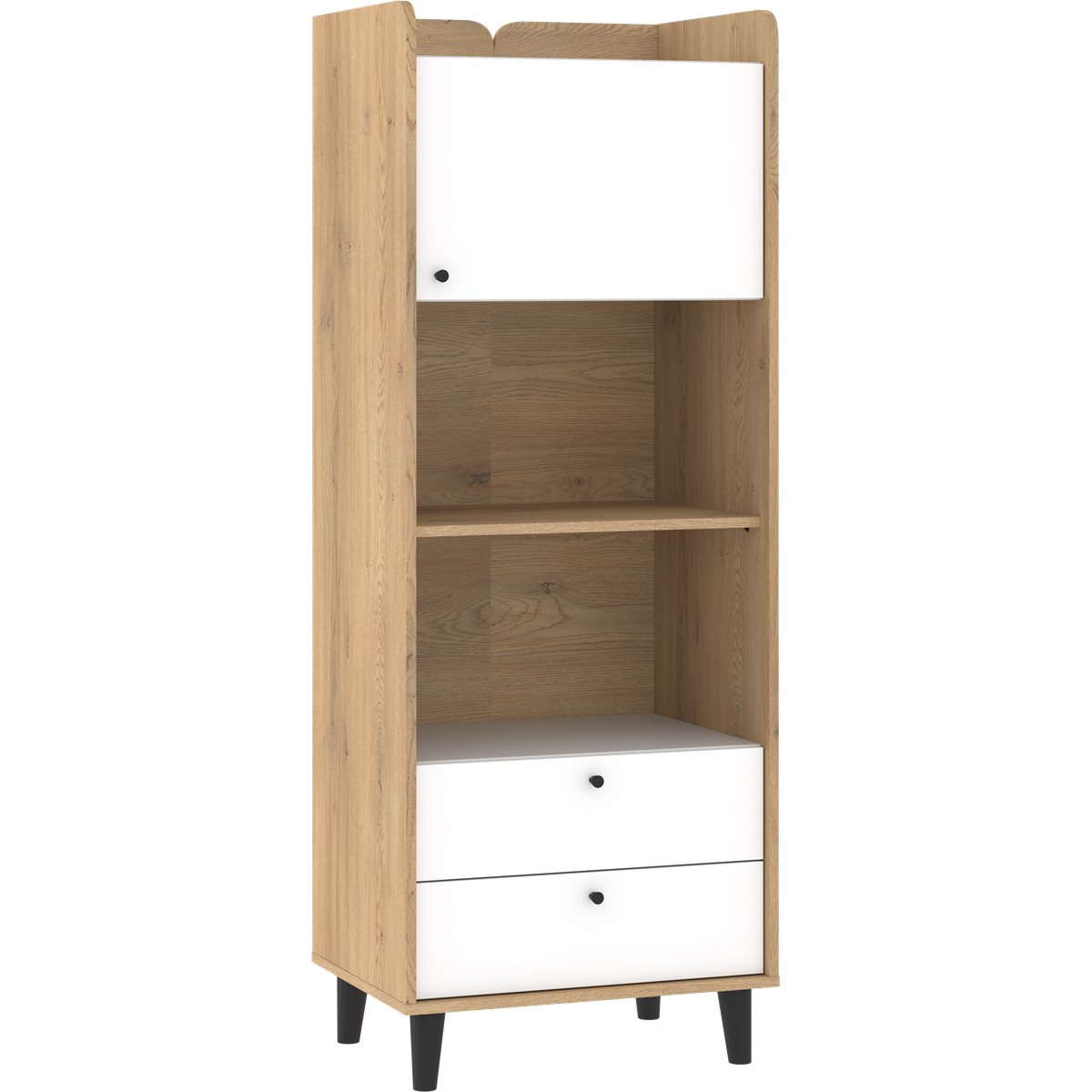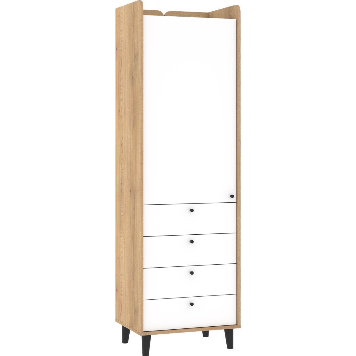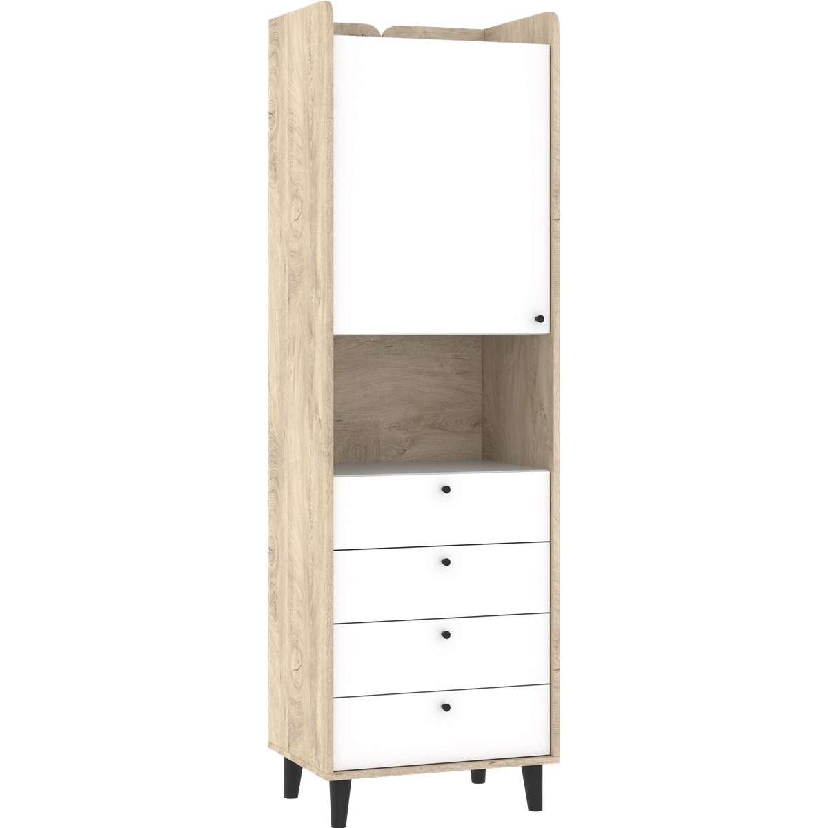 Komoda DOLCE wyposażona w 2-drzwiowy, częściowo przeszklony front za którym kryją się praktyczne półki oraz 4 szuflady. Drzwi i szuflady w standardzie posiadają cichy domyk co sprawia, że zamykają się płynnie. Drewniane, czarne nóżki podkreślają charakter mebla. Dzięki szerokiej gamie kolorów do wyboru na pewno wybierzesz coś dla siebie.
