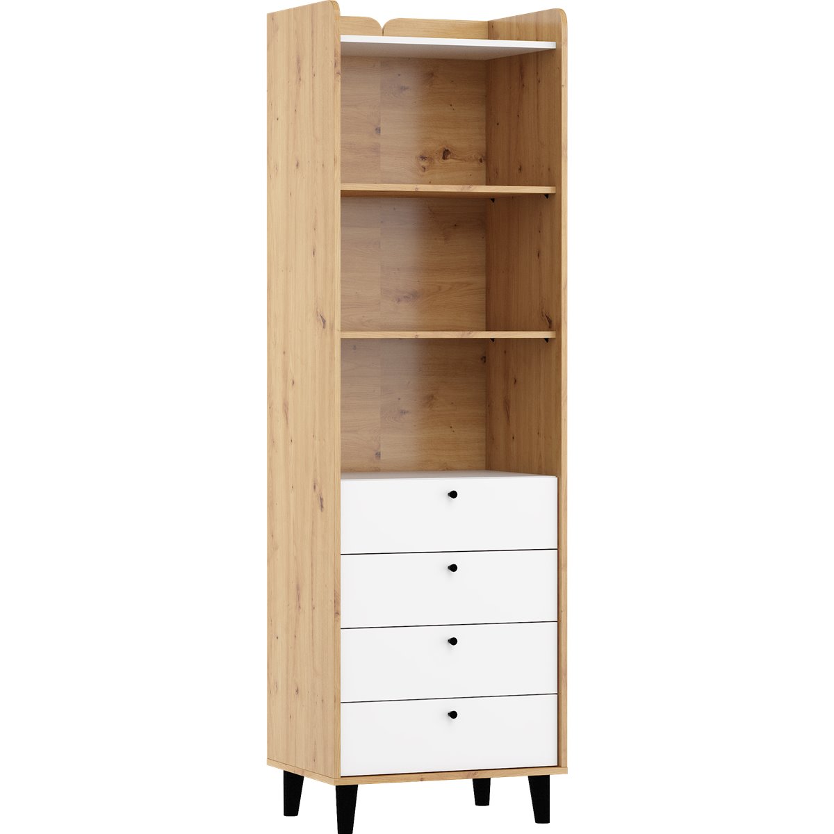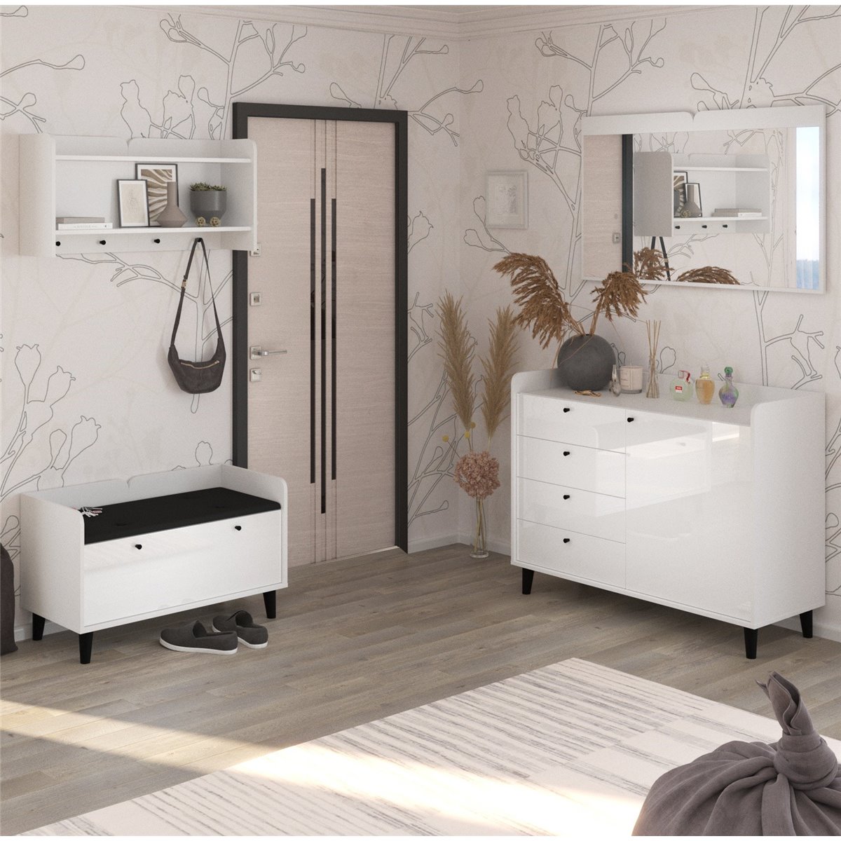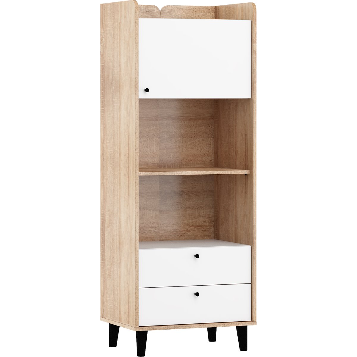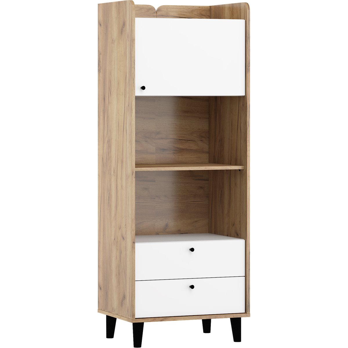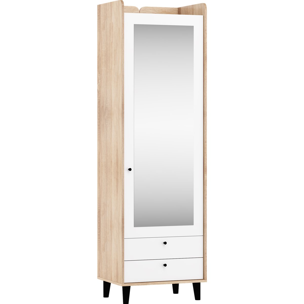Komoda DOLCE wyposażona w 2-drzwiowy, częściowo przeszklony front za którym kryją się praktyczne półki oraz 4 szuflady. Drzwi i szuflady w standardzie posiadają cichy domyk co sprawia, że zamykają się płynnie. Drewniane, czarne nóżki podkreślają charakter mebla. Dzięki szerokiej gamie kolorów do wyboru na pewno wybierzesz coś dla siebie.