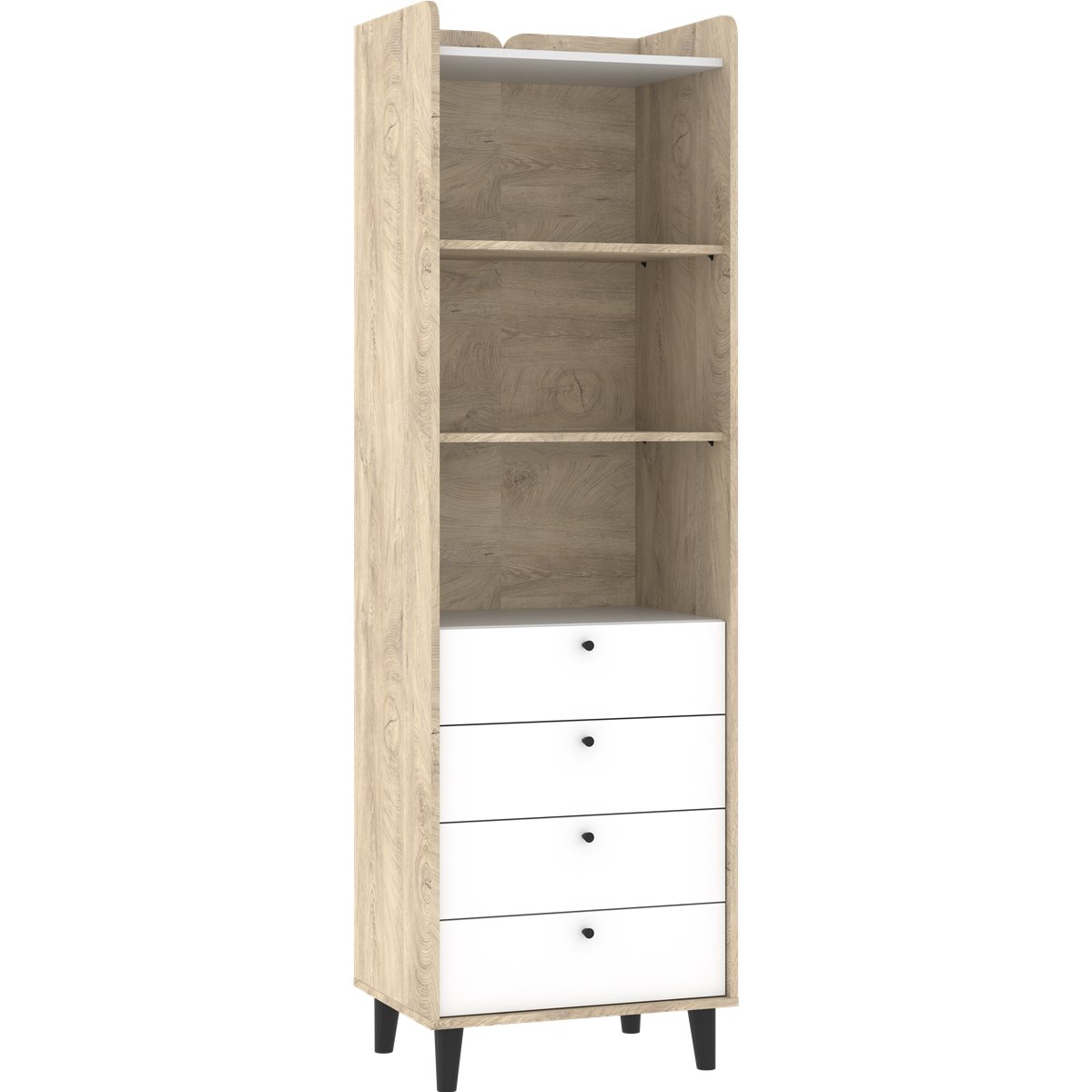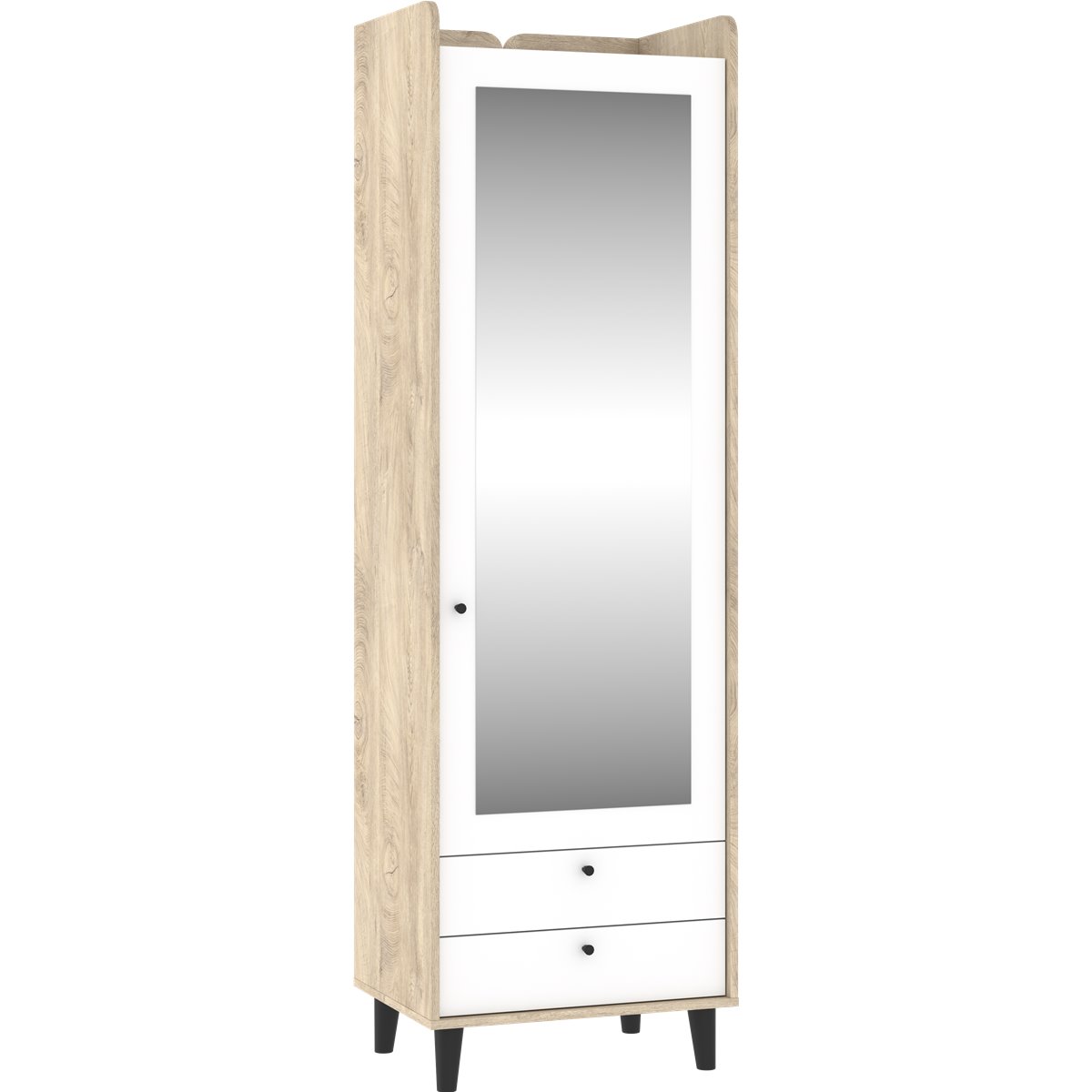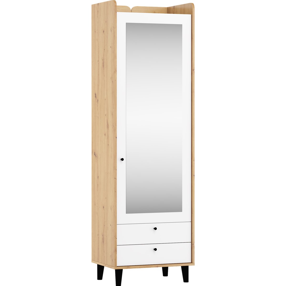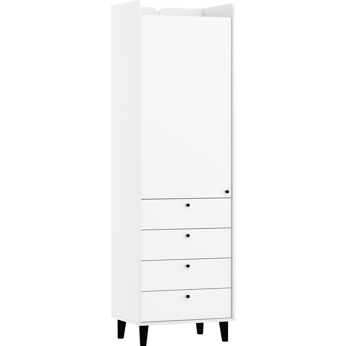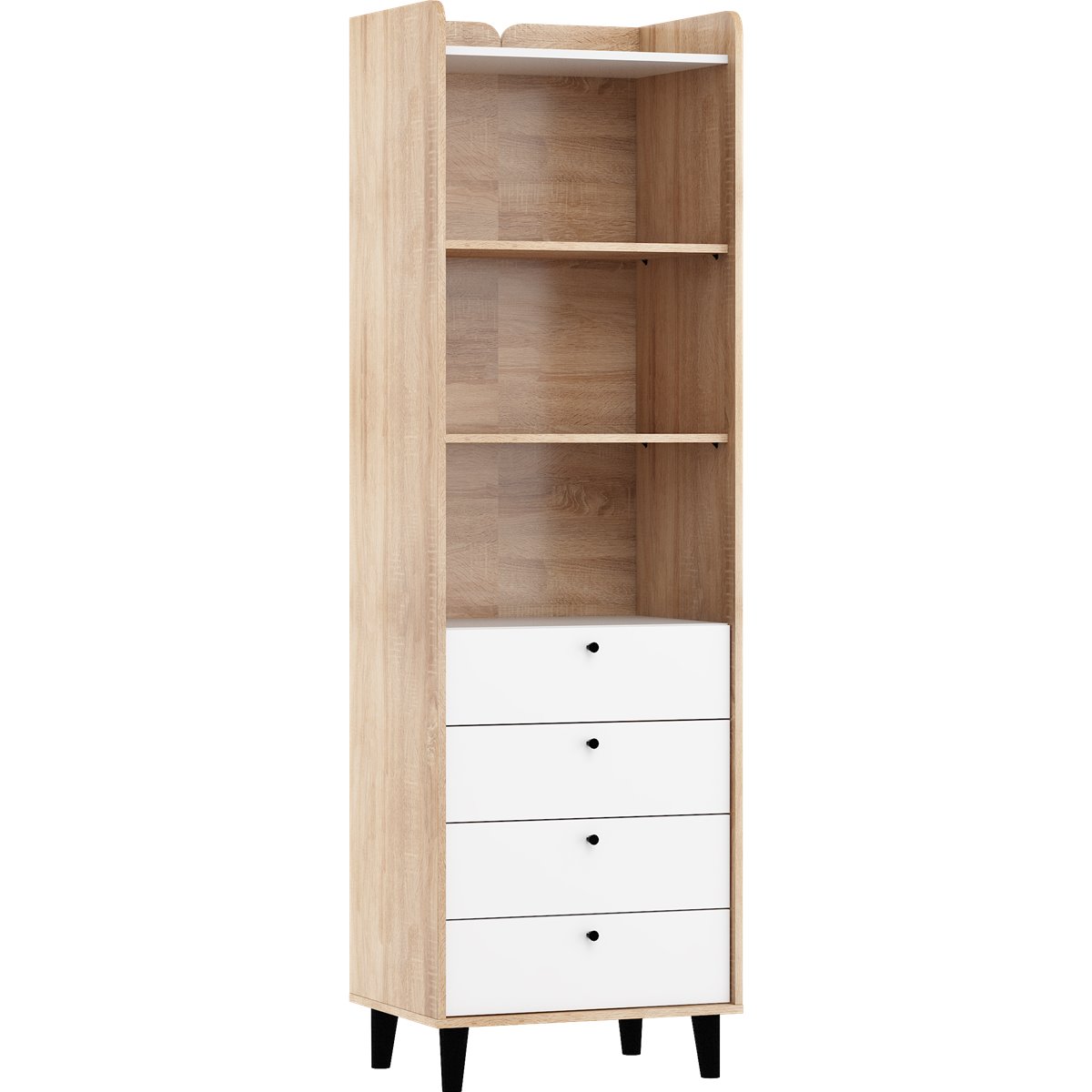 Komoda DOLCE wyposażona w 2-drzwiowy, częściowo przeszklony front za którym kryją się praktyczne półki oraz 4 szuflady. Drzwi i szuflady w standardzie posiadają cichy domyk co sprawia, że zamykają się płynnie. Drewniane, czarne nóżki podkreślają charakter mebla. Dzięki szerokiej gamie kolorów do wyboru na pewno wybierzesz coś dla siebie.