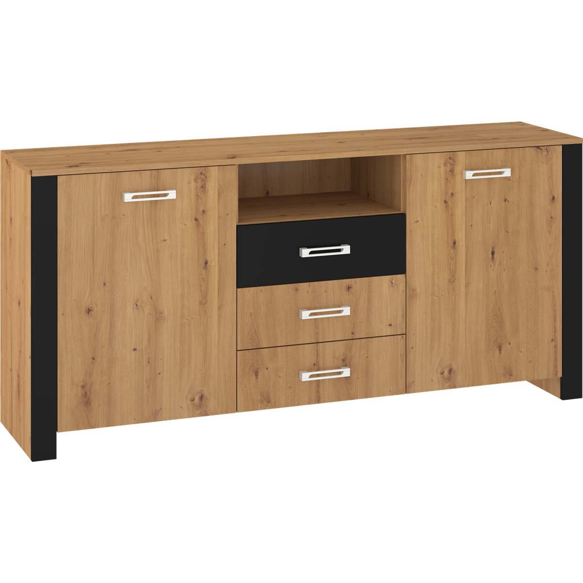 Nowoczesna kolekcja mebli HUGO zachwyca ciekawymi kolorami i niebagatelnym wzornictwem. Pionowe wybarwienia w kontrastującym kolorze podkreślają asymetryczną konstrukcję całości. Meble idealnie wkomponowują się w przestrzeń pokoju dziennego, jak i gabinetu lub wnętrza nastolatka. Na uwagę zasługuje wysoka jakość płyt oraz staranne wykonanie. Do wyboru posiadamy sześć wersji kolorystycznych, dzięki czemu dopasuje się do wielu wnętrz.