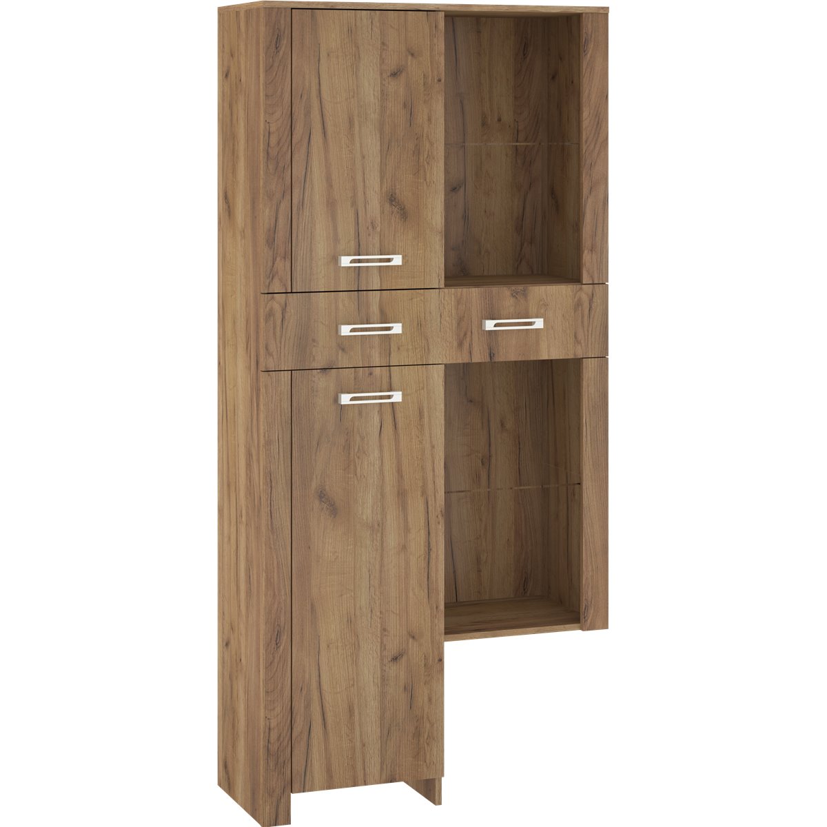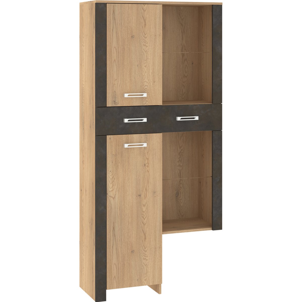 Szafa z kolekcji HUGO. Szafa wyposażona została w 2 drążki na wieszaki oraz 4 półki. Uchwyty wykonane zostały z tworzywa sztucznego w kolorze satyny.