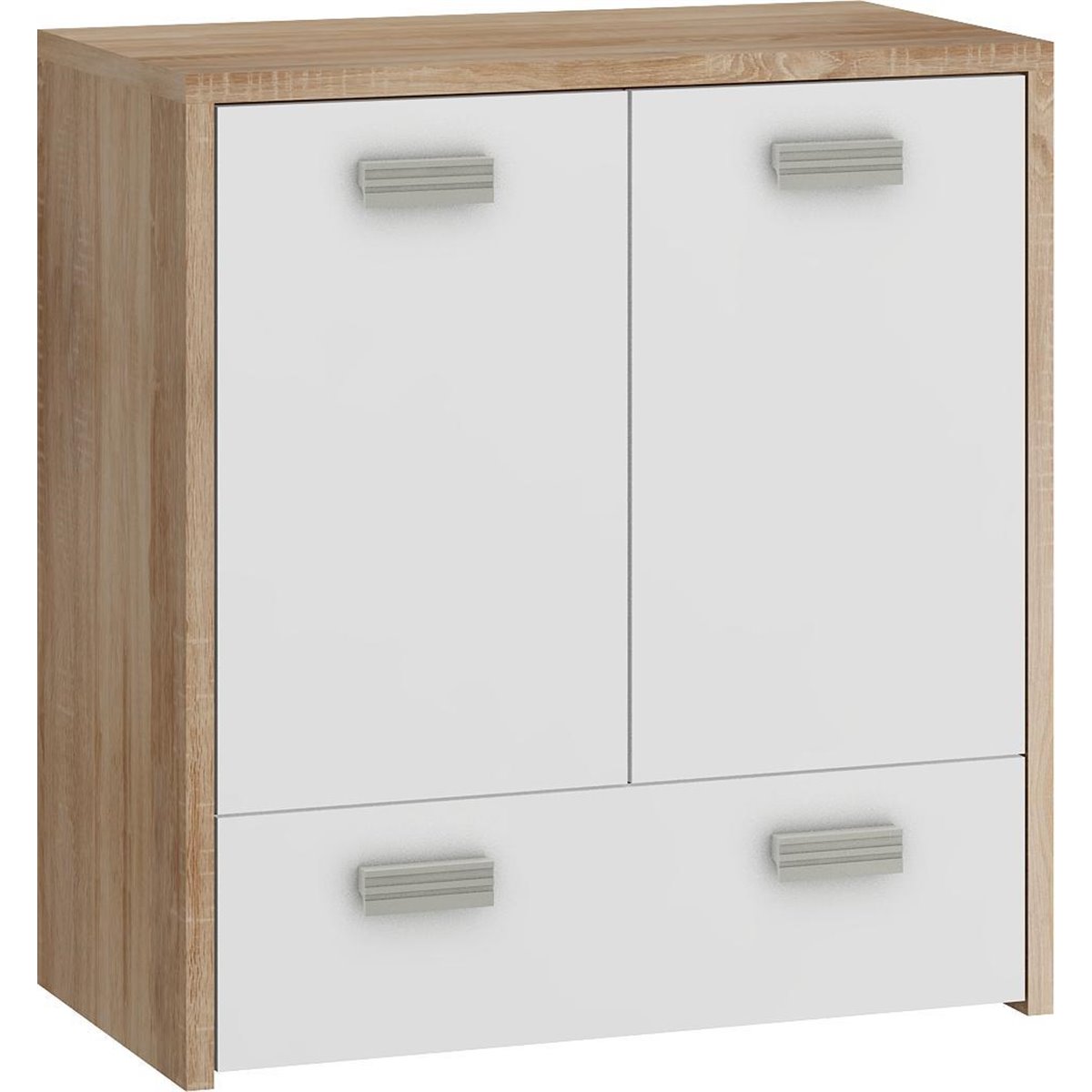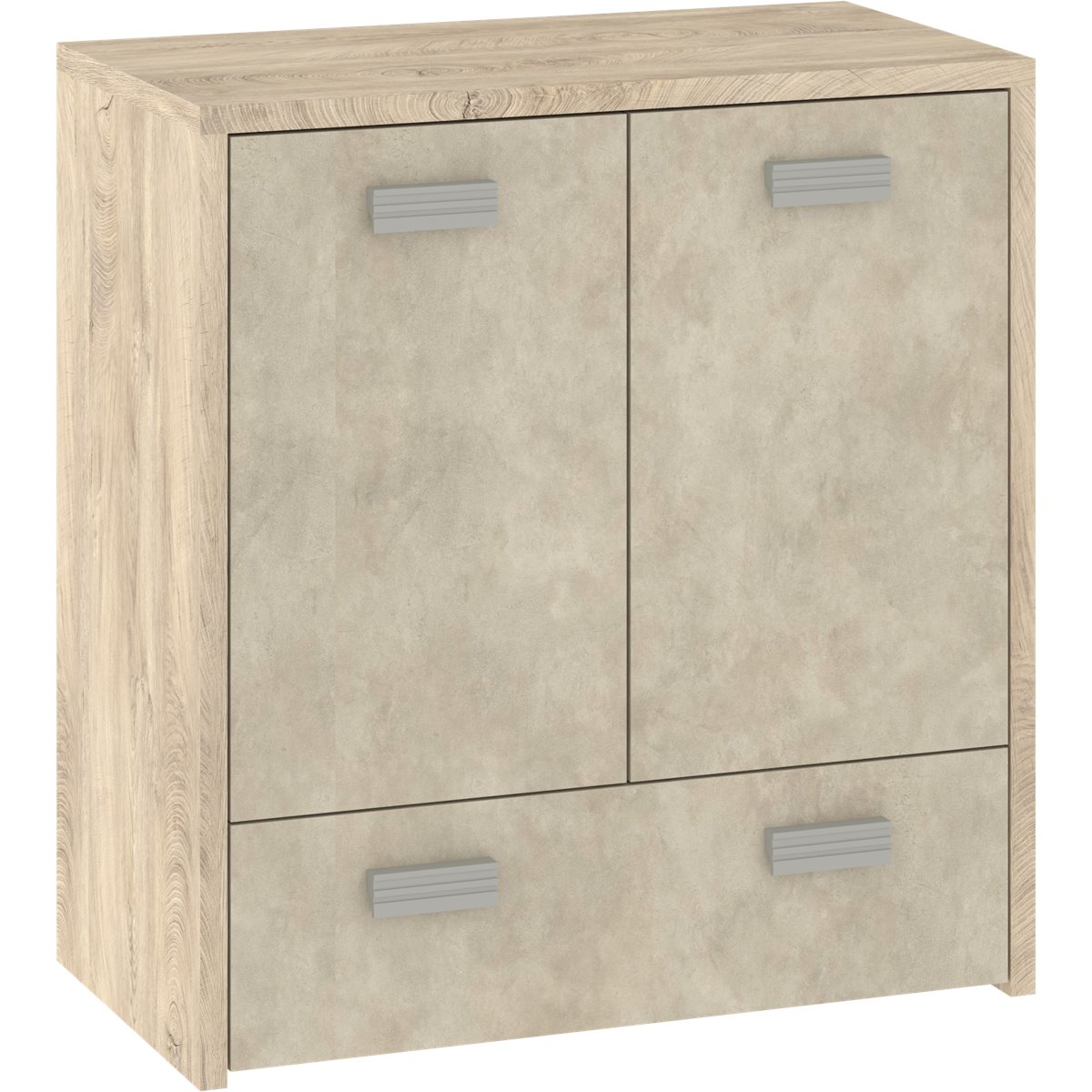 Stolik nocny z kolekcji KITTY. Stolik wyposażony został w szufladę oraz widoczną półkę pod blatem. Uchwyty wykonane zostały z tworzywa sztucznego w kolorze satyny.
