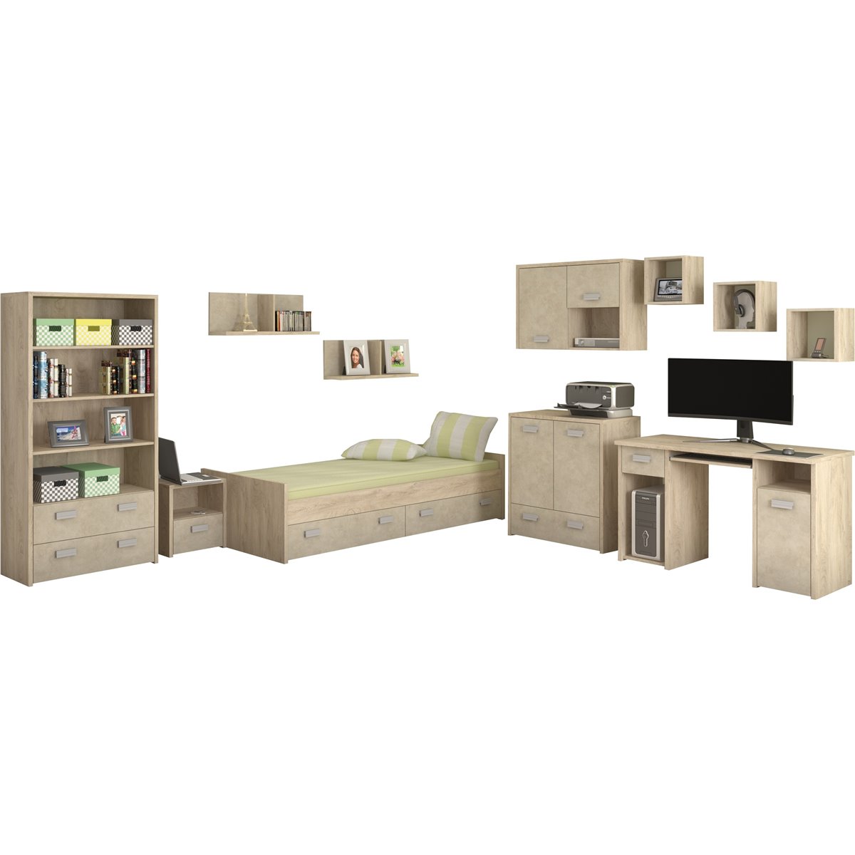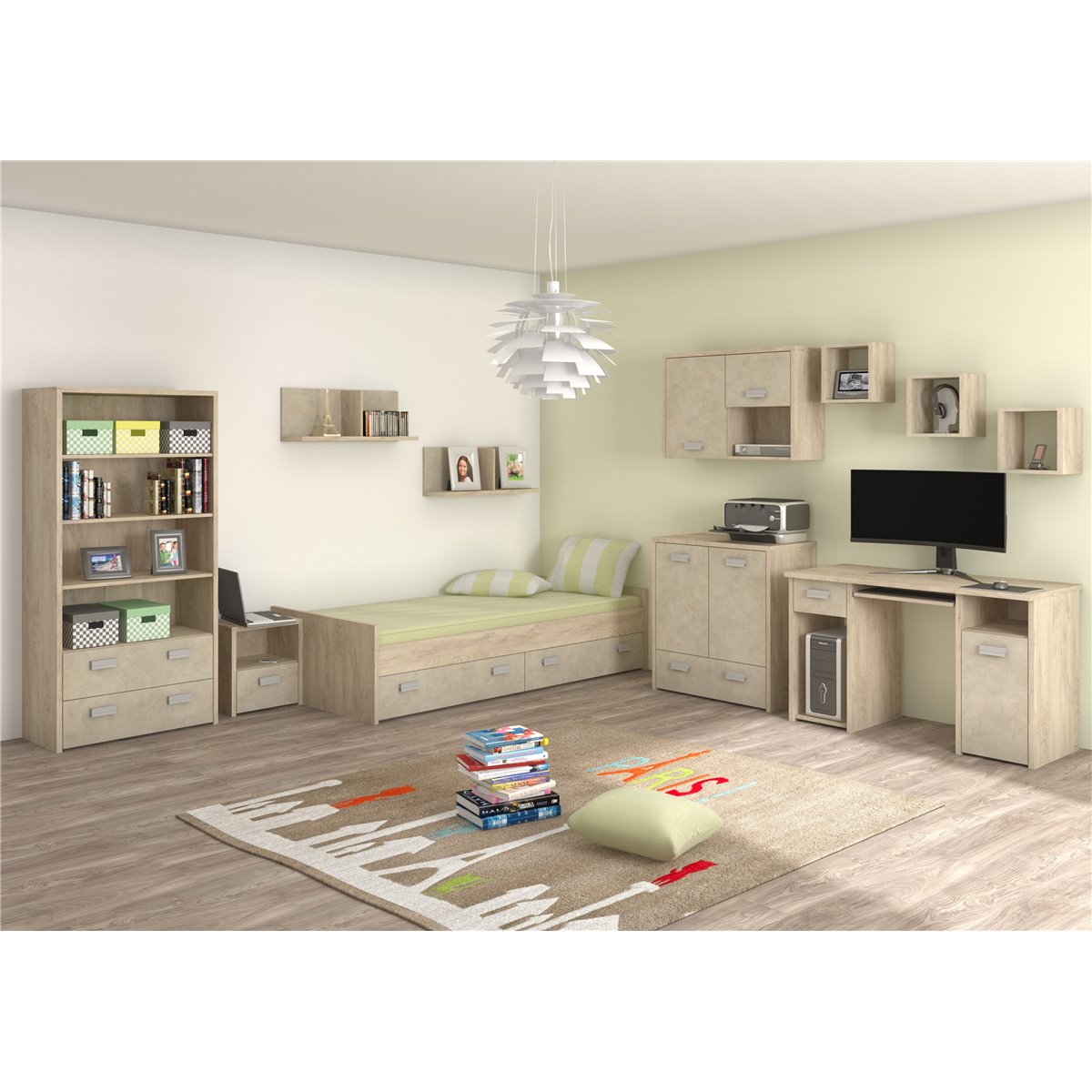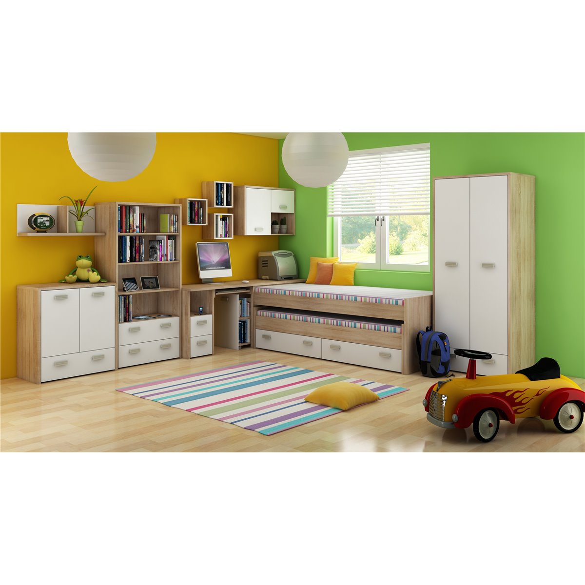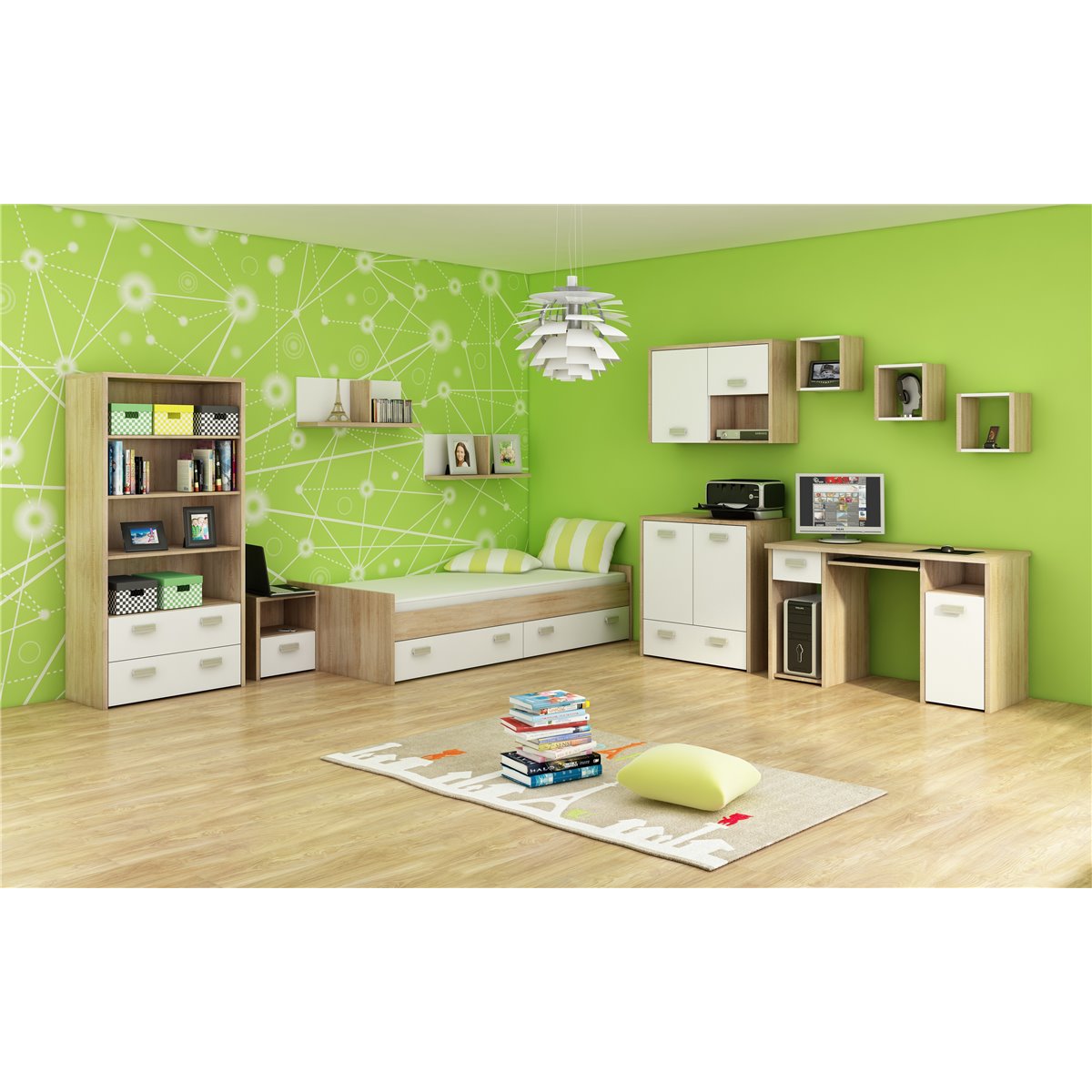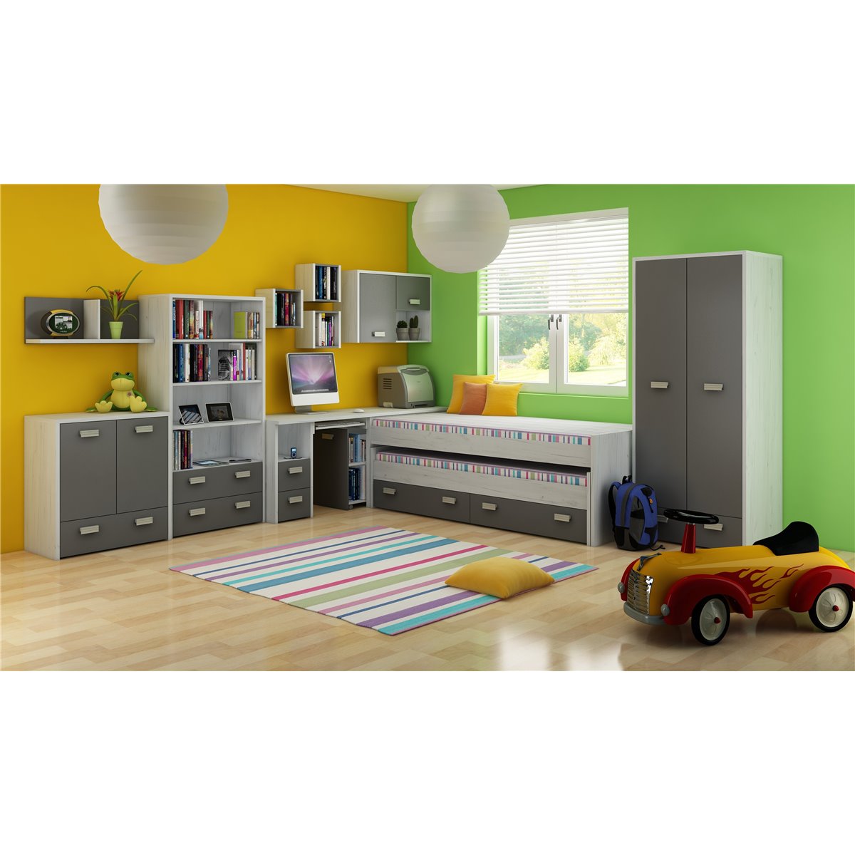 Przy urządzaniu pokoju dla dziecka czy nastolatka potrzebne są ciekawe pomysły, jakie znaleźć można w meblach systemowych KITTY. Oprócz doskonałych zestawień kolorystycznych - połączenia kolorów drewna, wrzosu, różu lub niebieskiego można uzyskać przyjazną przestrzeń, która oprócz ciekawego wyglądu charakteryzuje się również doskonałą funkcjonalnością. Na uwagę zasługuje szczególnie dwuosobowe łóżko o ciekawym systemie składania, system szafek, regałów i półek, które pomieszczą wszystkie rzeczy niezbędne do nauki, zabawy czy też rozwijania pasji. Wygodne biurko, pojemne szafy i komody to podstawowe elementy systemu, który można komponować z mebli najwyższej jakości.