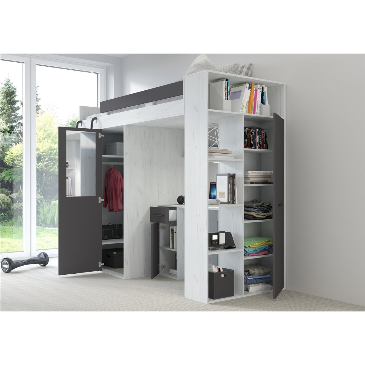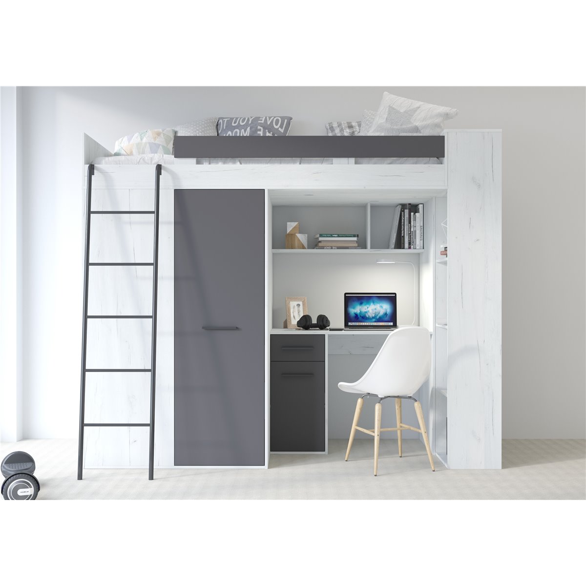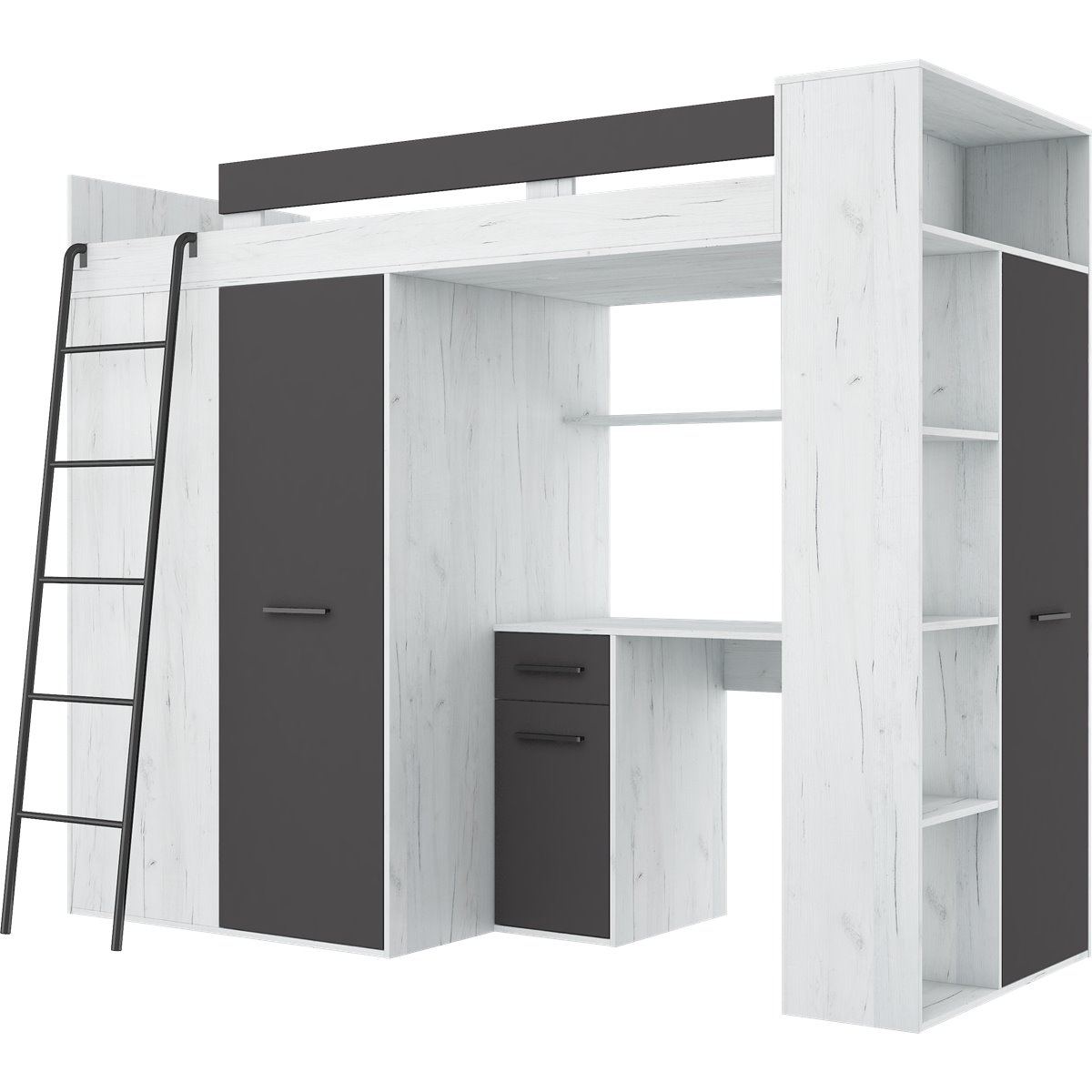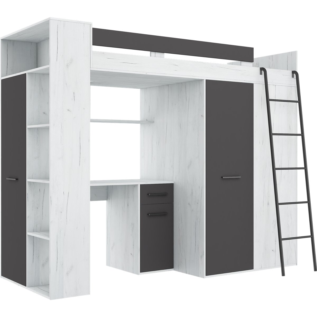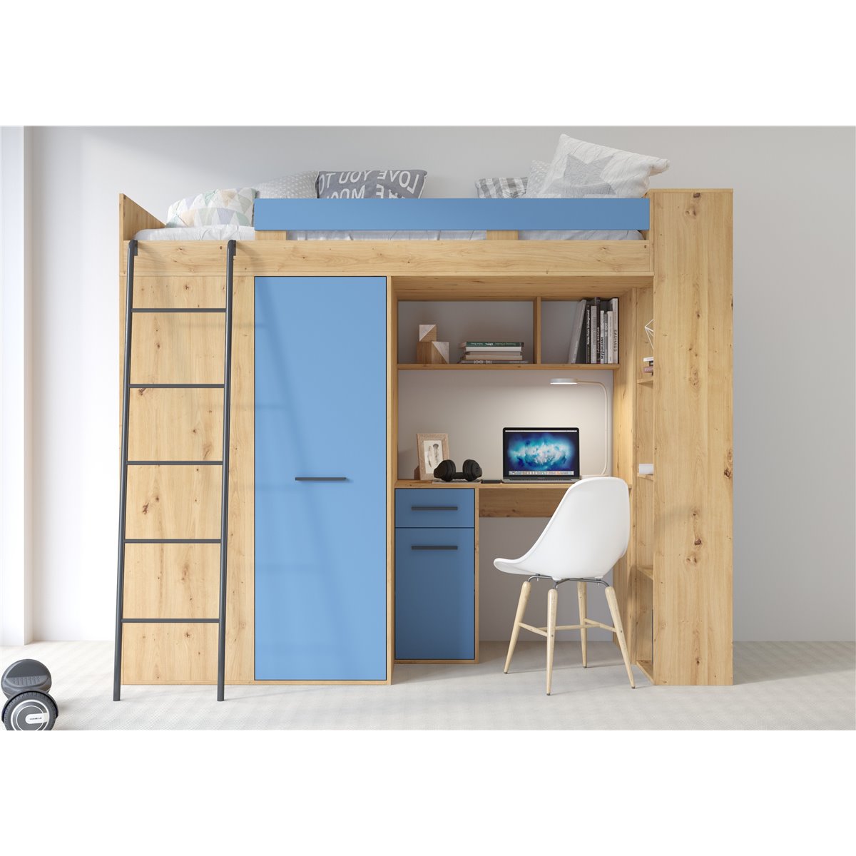 VERANA to świetna propozycja do niewielkiej sypialni dziecka. W skład bryły wchodzą najpotrzebniejsze elementy takie jak pojemna szafa, łóżko o powierzchni spania 80x200 oraz biurko. Liczne półki oraz szafki pomogą utrzymać porządek, a dzięki kolorystyce do wyboru dopasujesz mebel do pokoju chłopca i dziewczynki.