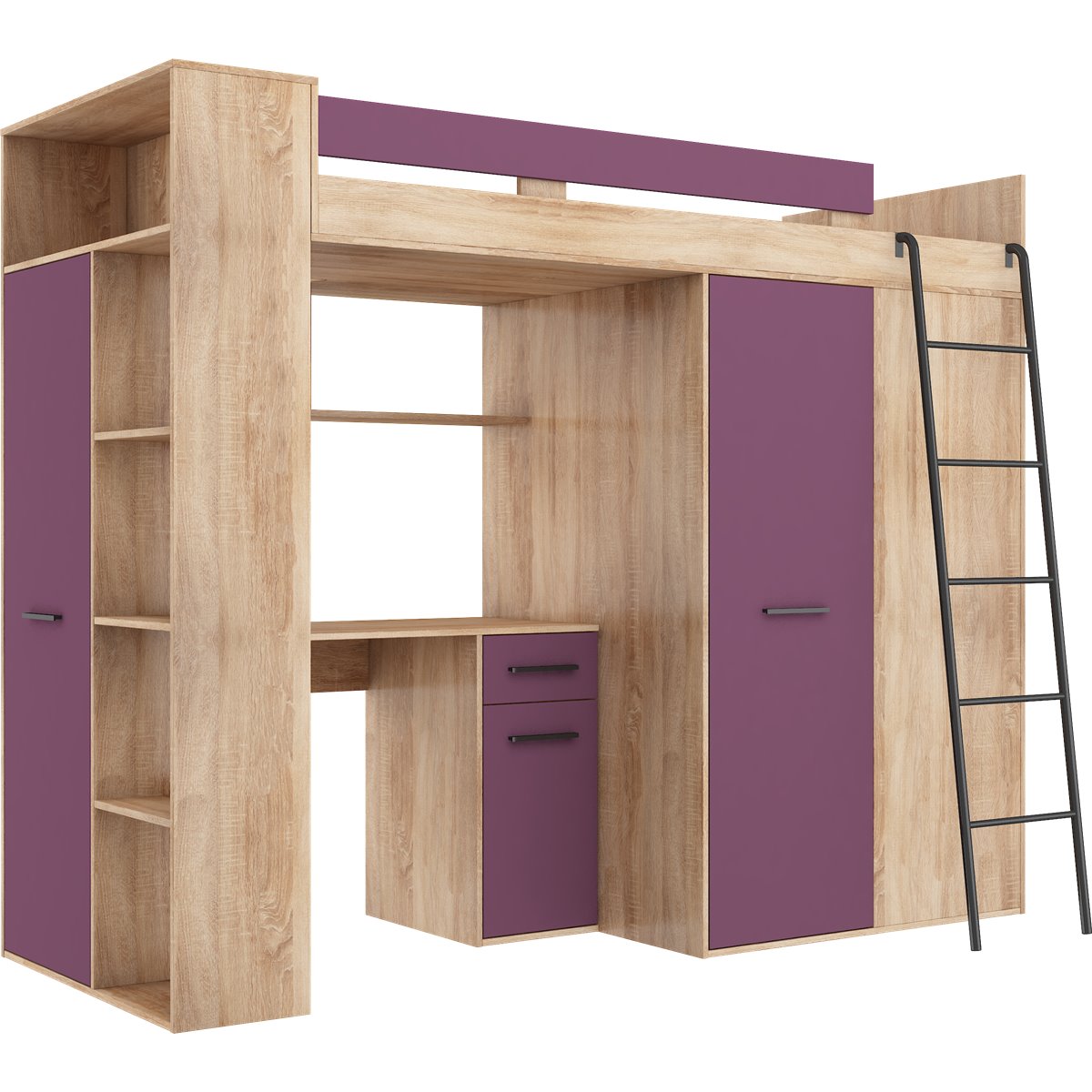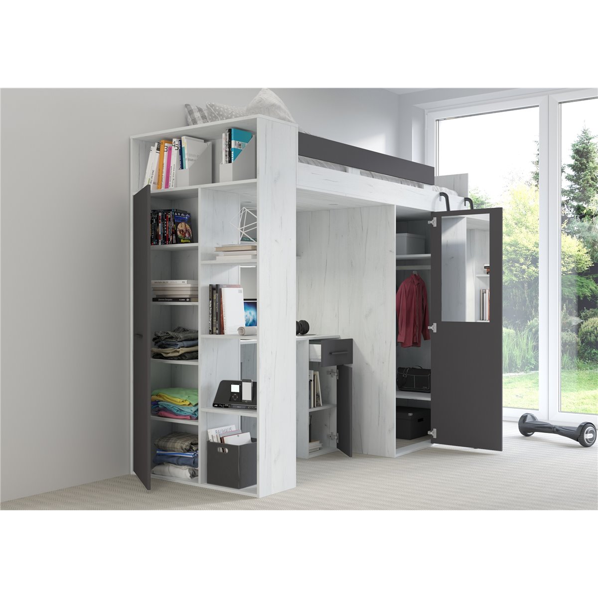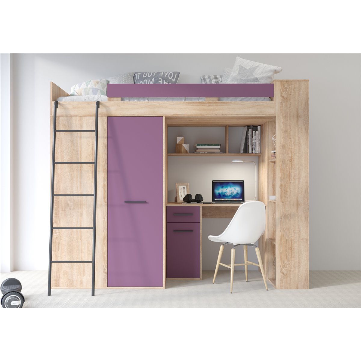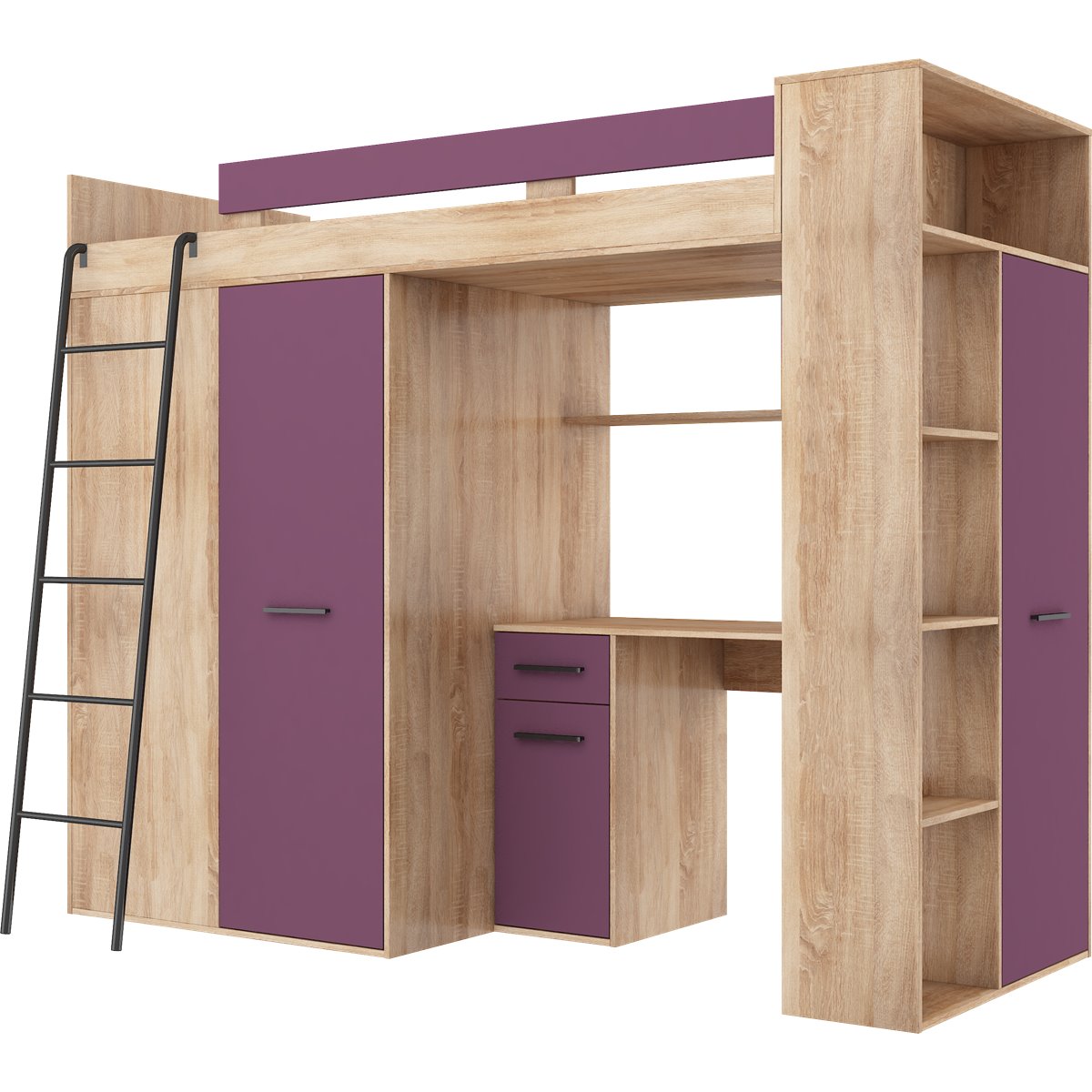 VERANA to świetna propozycja do niewielkiej sypialni dziecka. W skład bryły wchodzą najpotrzebniejsze elementy takie jak pojemna szafa, łóżko o powierzchni spania 80x200 oraz biurko. Liczne półki oraz szafki pomogą utrzymać porządek, a dzięki kolorystyce do wyboru dopasujesz mebel do pokoju chłopca i dziewczynki.