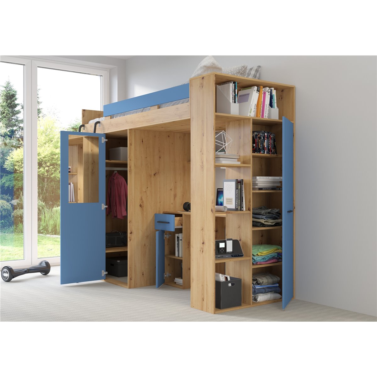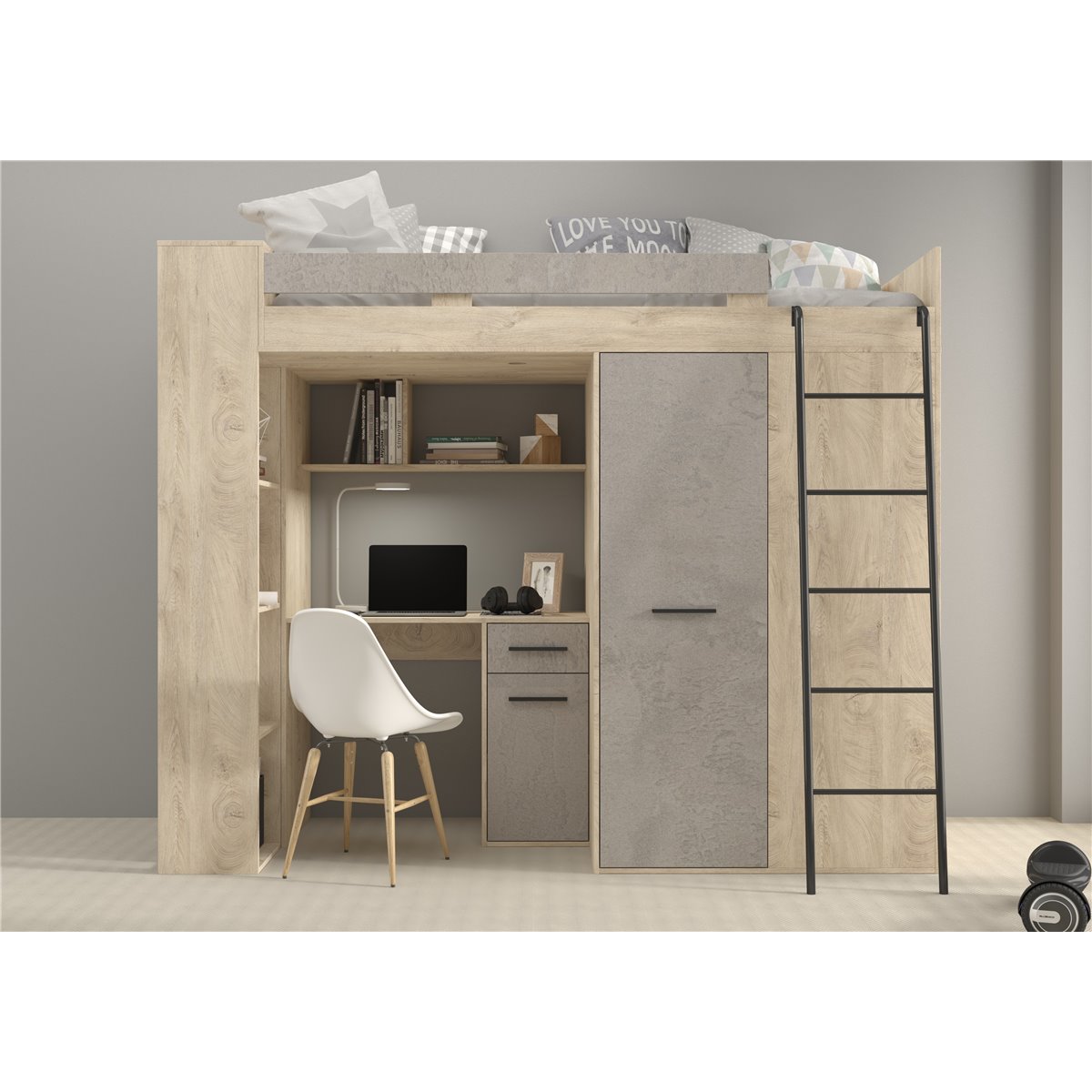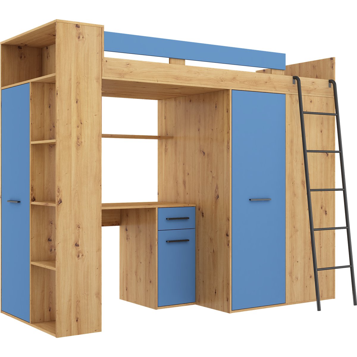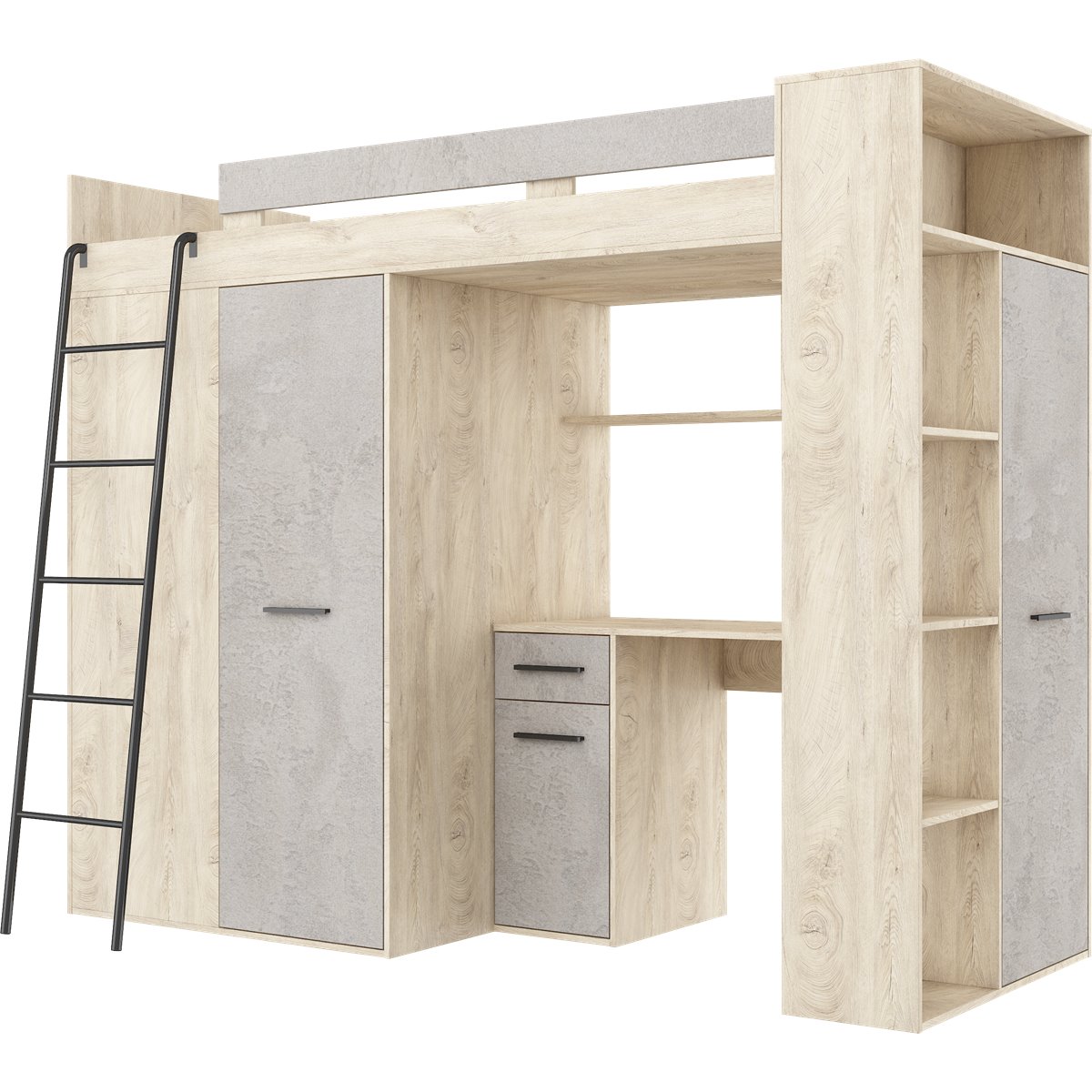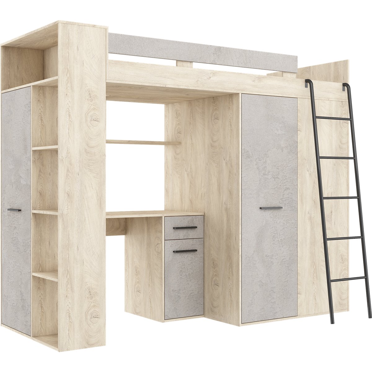 VERANA to świetna propozycja do niewielkiej sypialni dziecka. W skład bryły wchodzą najpotrzebniejsze elementy takie jak pojemna szafa, łóżko o powierzchni spania 80x200 oraz biurko. Liczne półki oraz szafki pomogą utrzymać porządek, a dzięki kolorystyce do wyboru dopasujesz mebel do pokoju chłopca i dziewczynki.