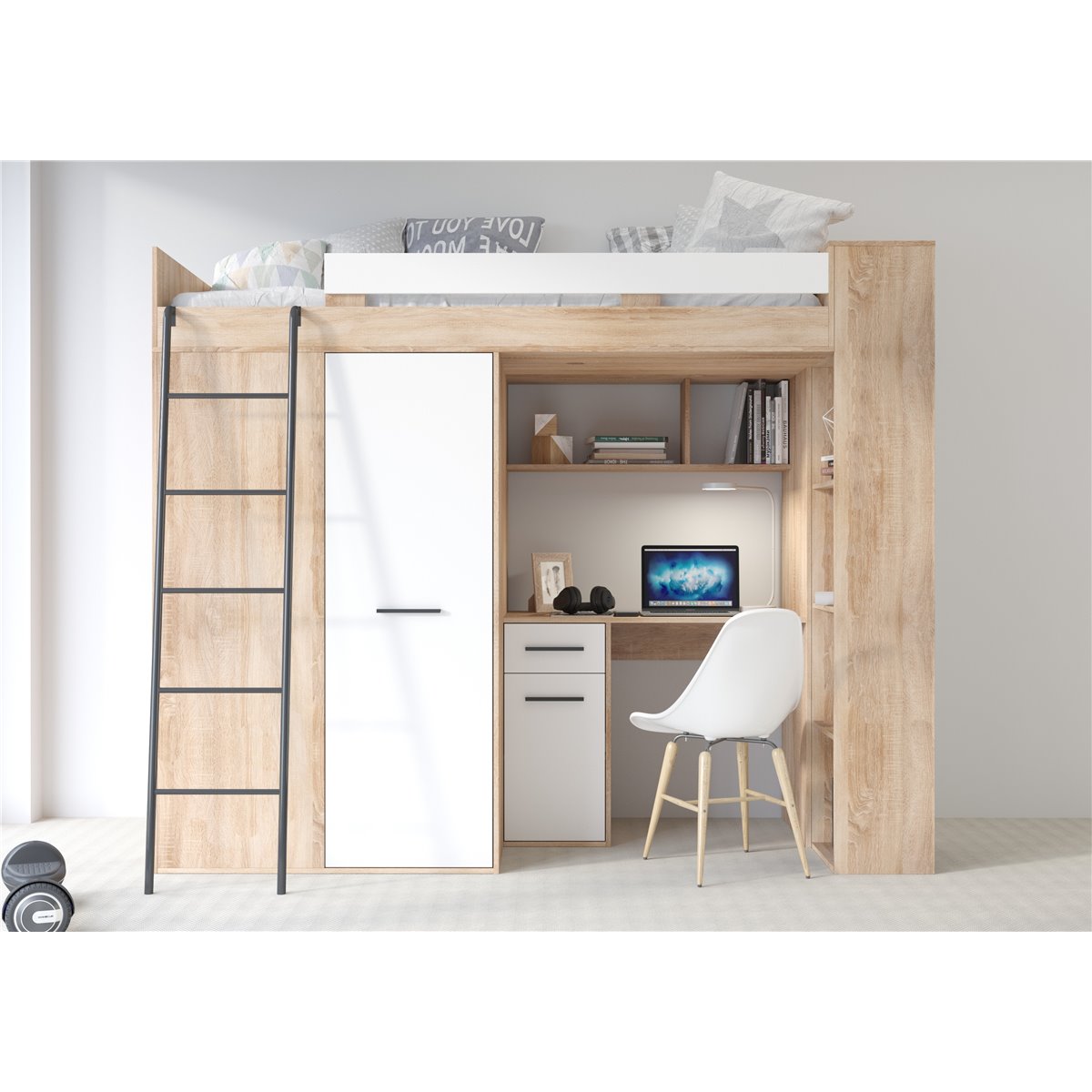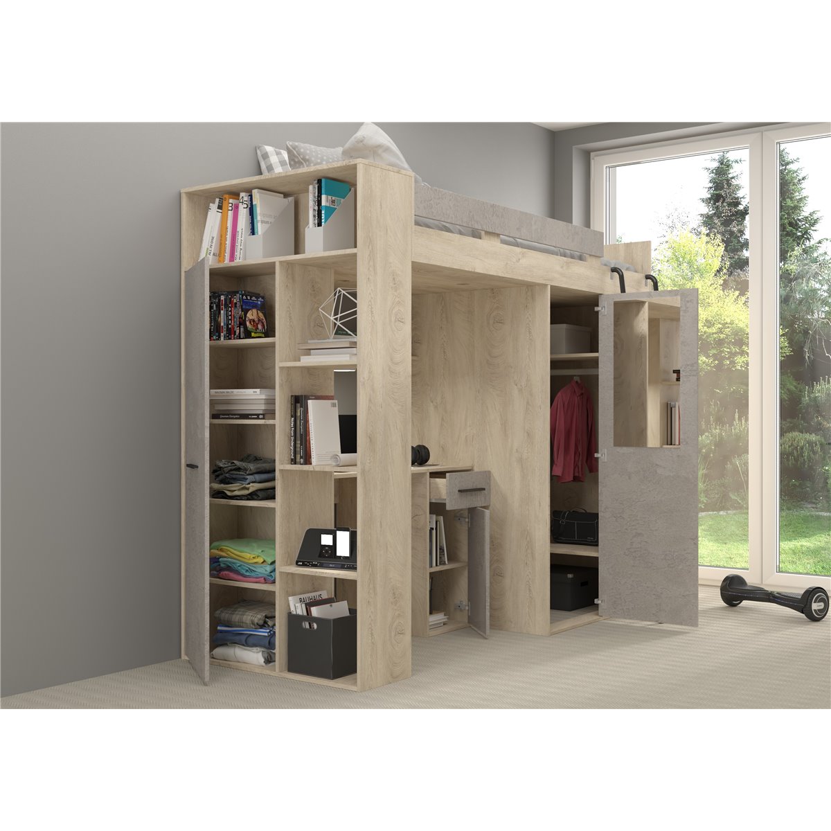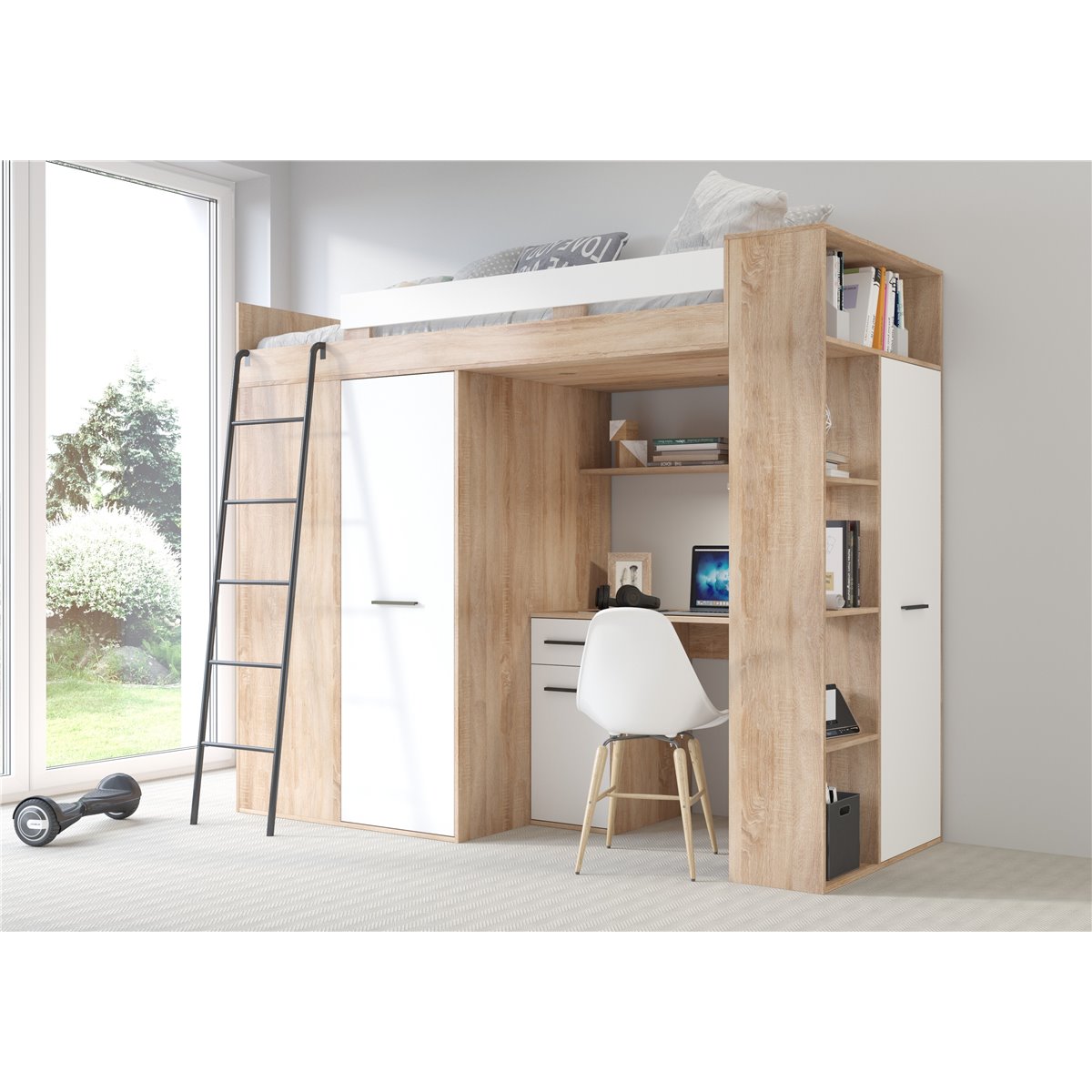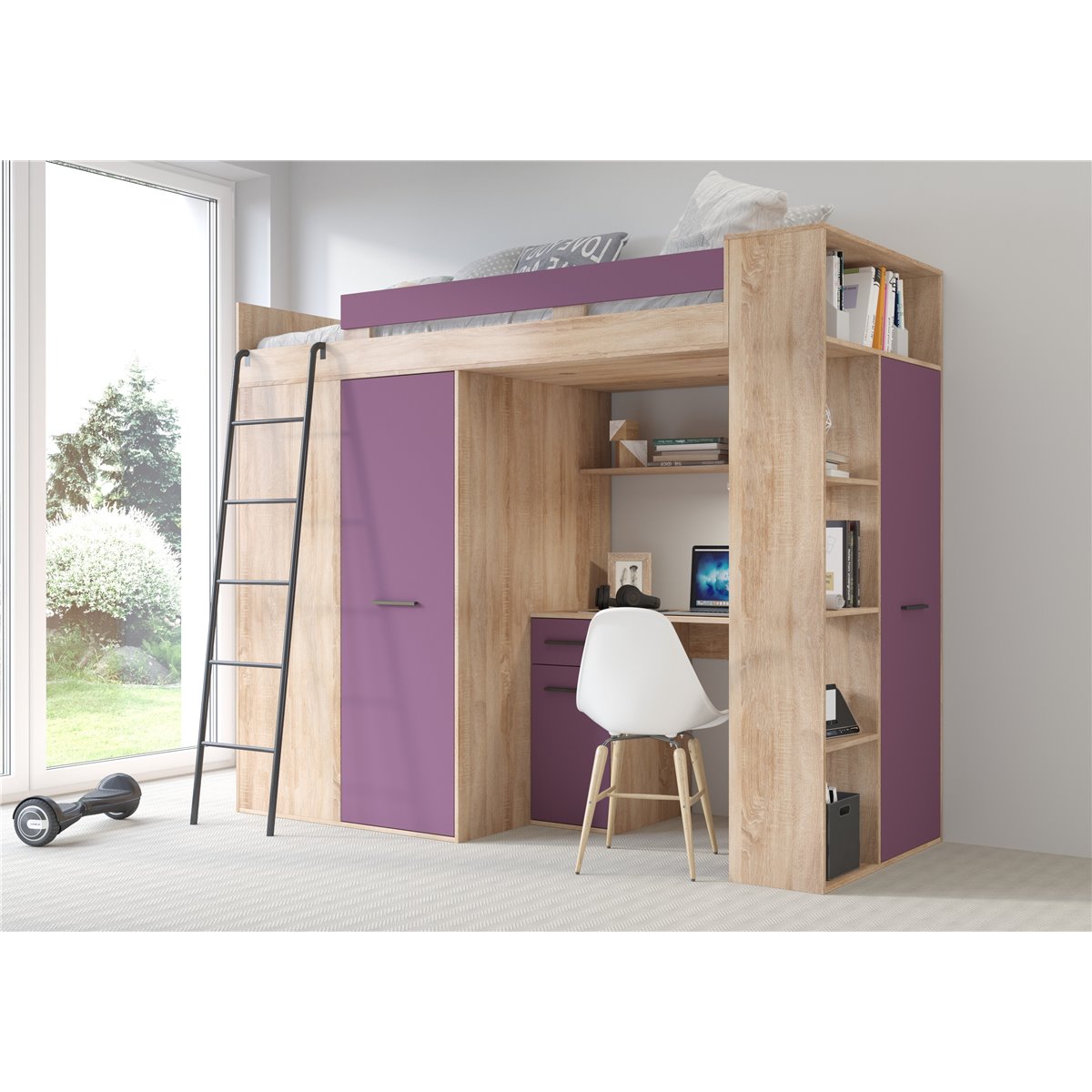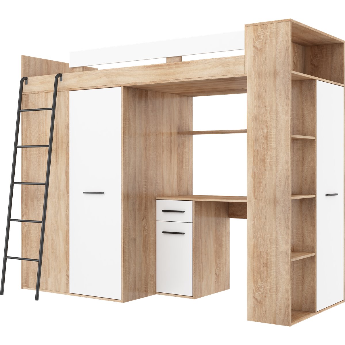 VERANA to świetna propozycja do niewielkiej sypialni dziecka. W skład bryły wchodzą najpotrzebniejsze elementy takie jak pojemna szafa, łóżko o powierzchni spania 80x200 oraz biurko. Liczne półki oraz szafki pomogą utrzymać porządek, a dzięki kolorystyce do wyboru dopasujesz mebel do pokoju chłopca i dziewczynki.