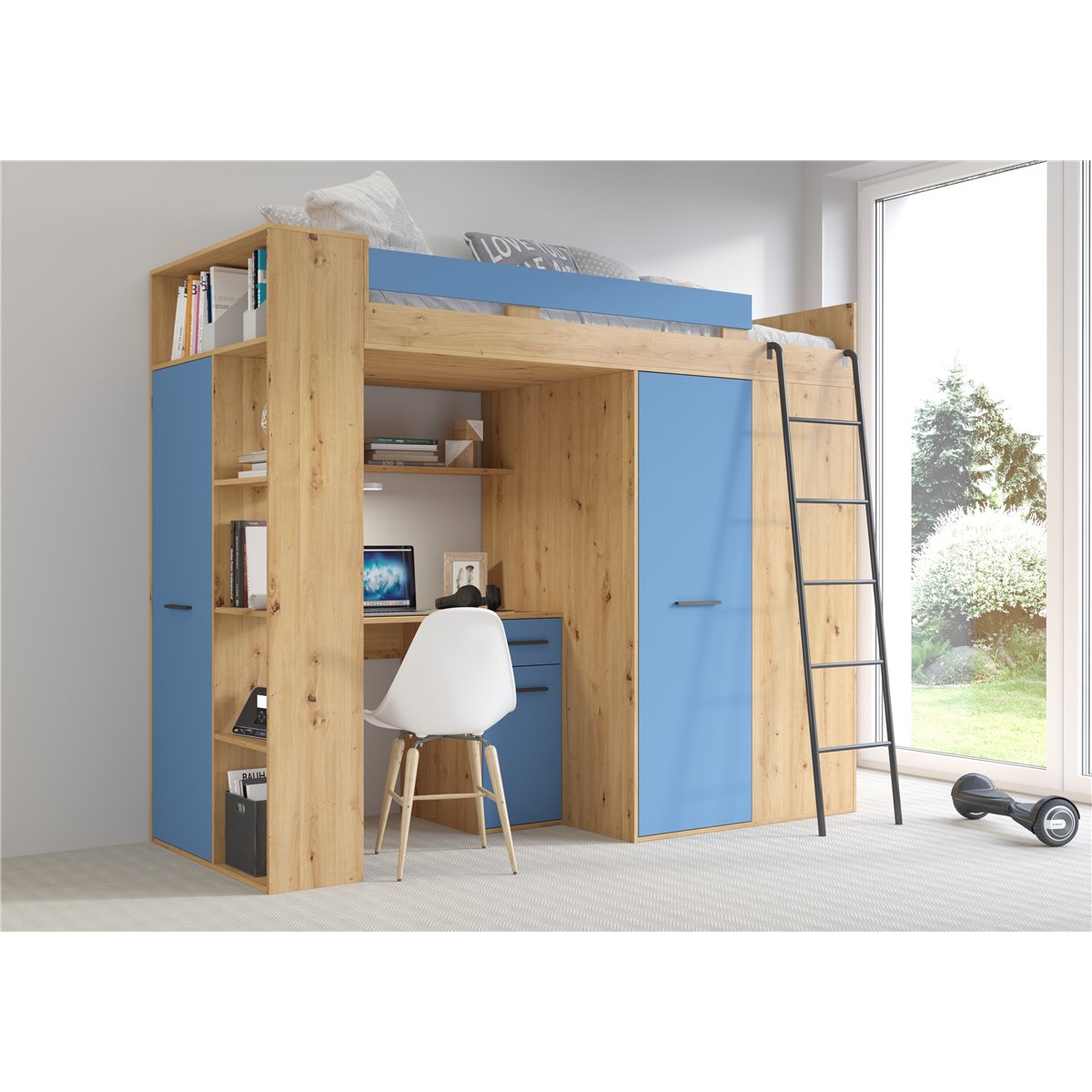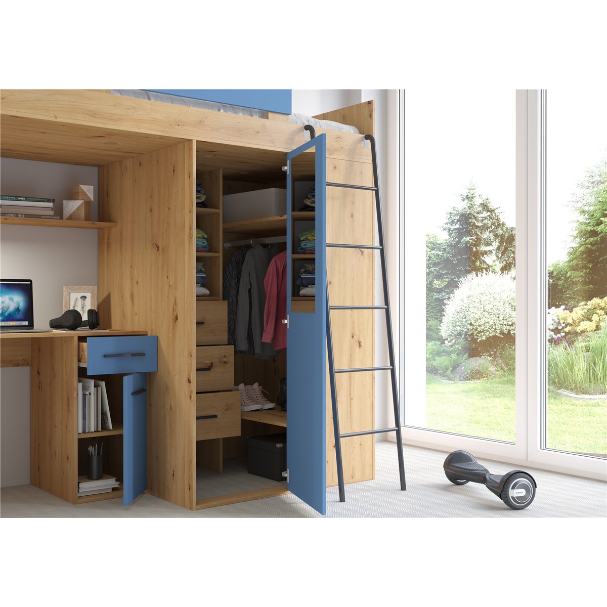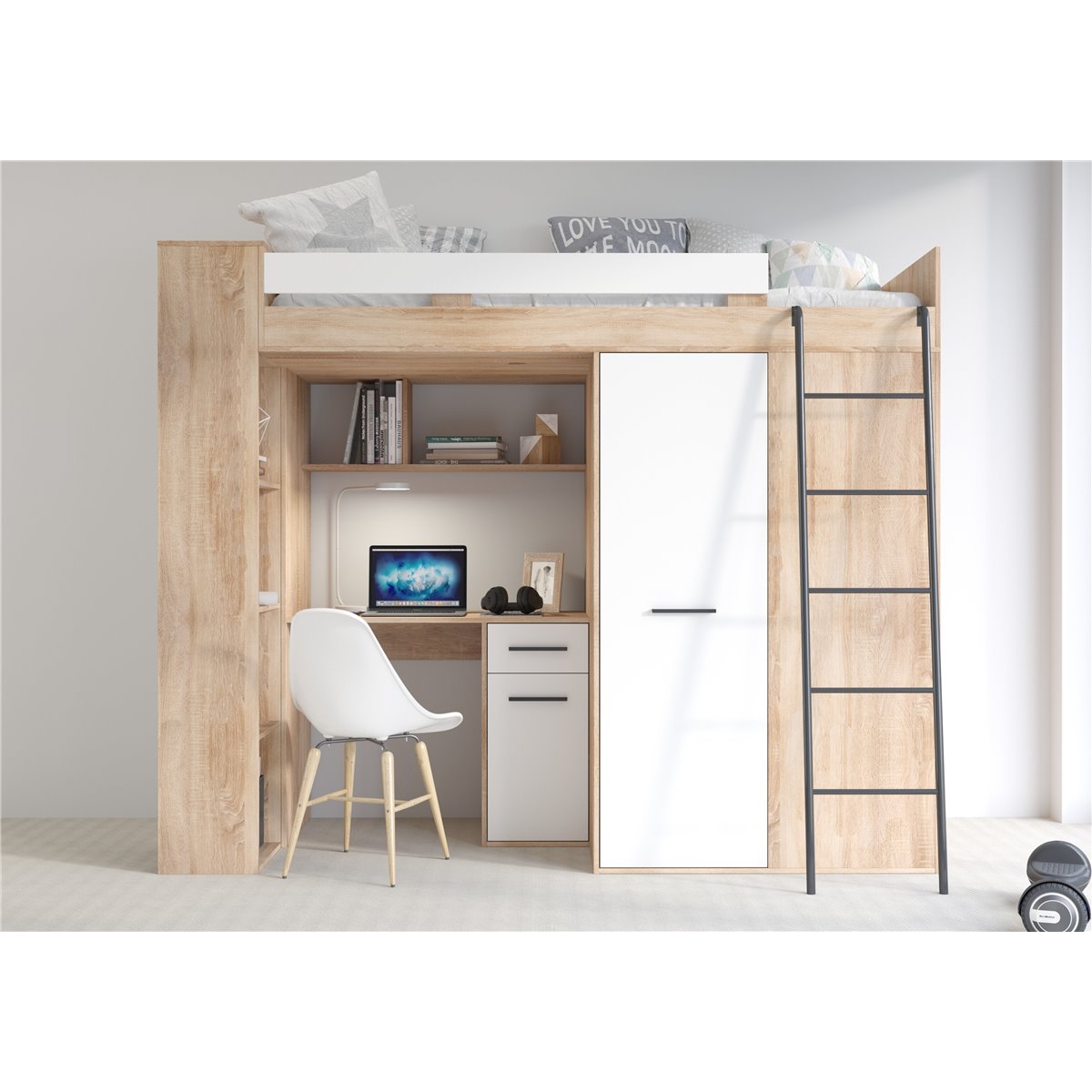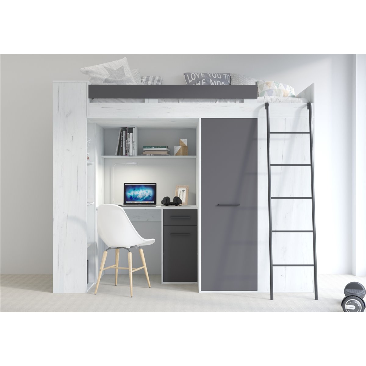 VERANA to świetna propozycja do niewielkiej sypialni dziecka. W skład bryły wchodzą najpotrzebniejsze elementy takie jak pojemna szafa, łóżko o powierzchni spania 80x200 oraz biurko. Liczne półki oraz szafki pomogą utrzymać porządek, a dzięki kolorystyce do wyboru dopasujesz mebel do pokoju chłopca i dziewczynki.