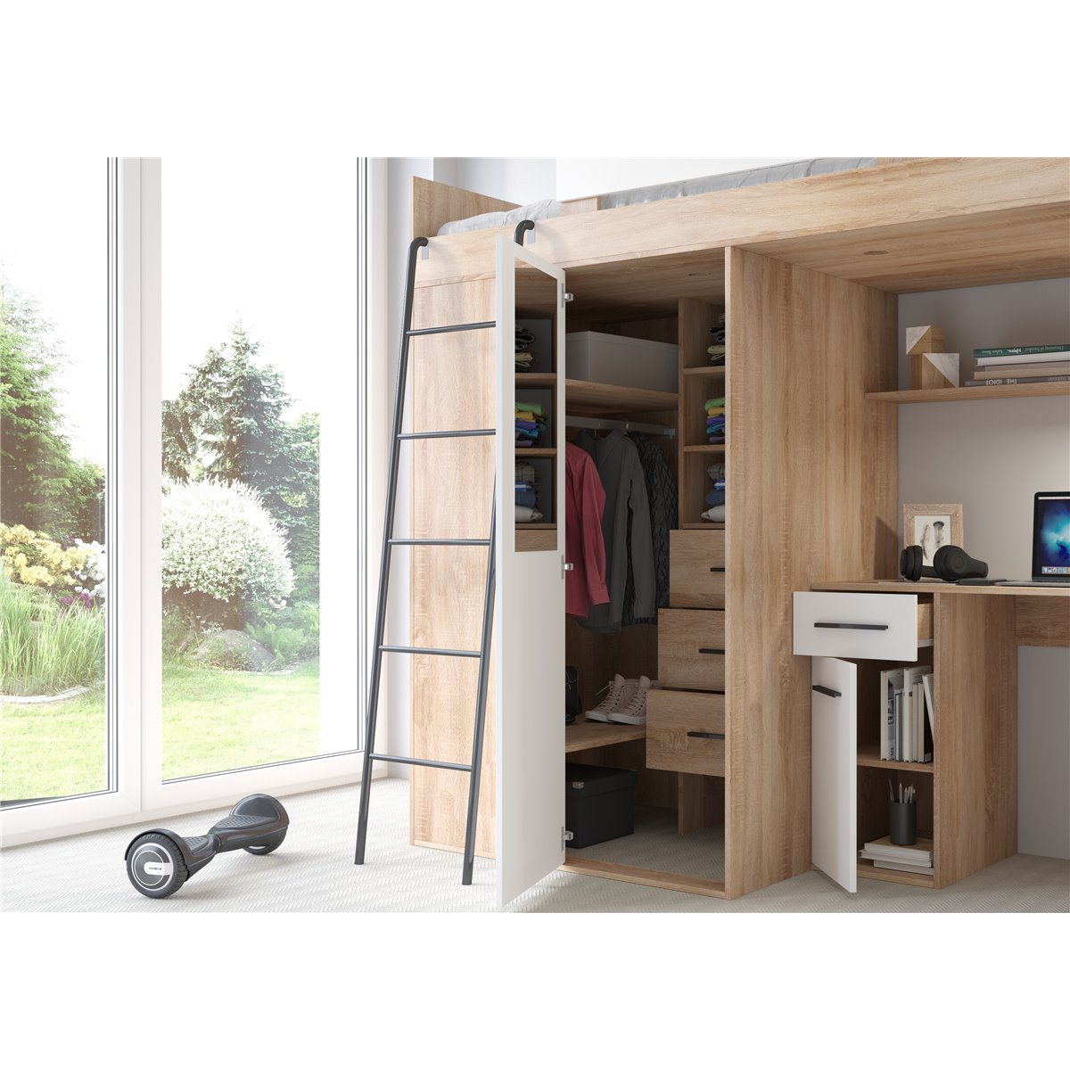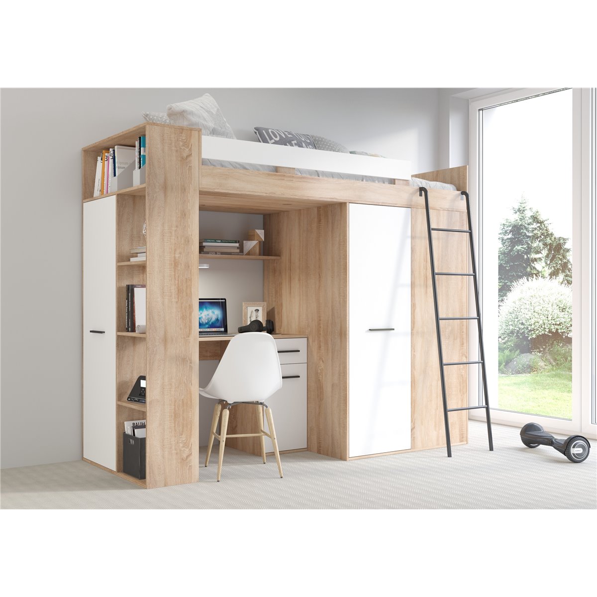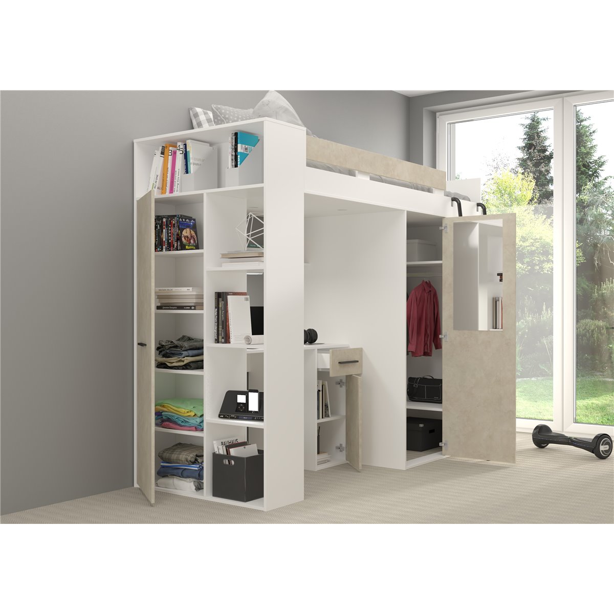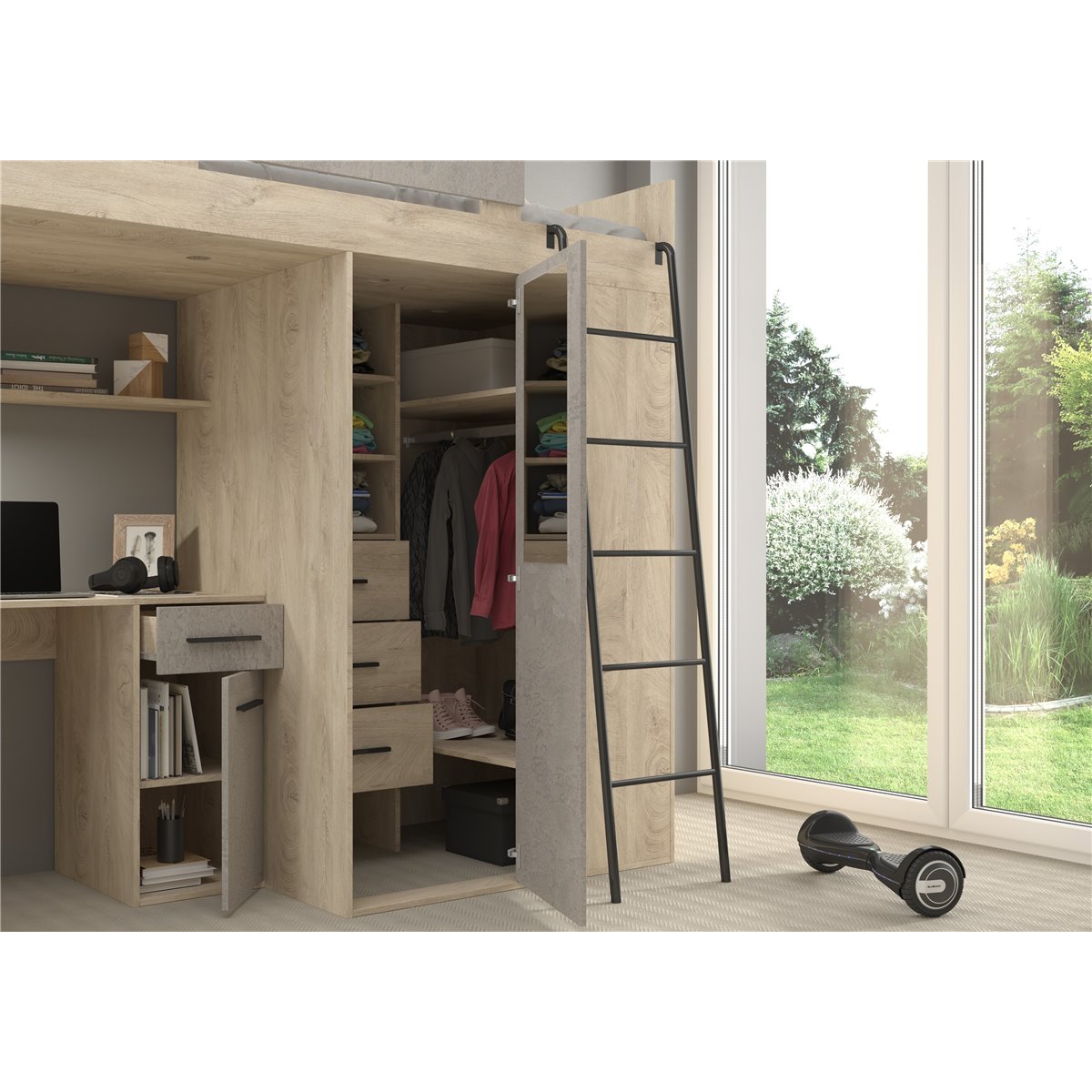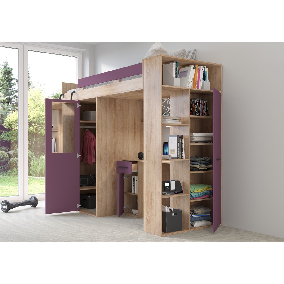 VERANA to świetna propozycja do niewielkiej sypialni dziecka. W skład bryły wchodzą najpotrzebniejsze elementy takie jak pojemna szafa, łóżko o powierzchni spania 80x200 oraz biurko. Liczne półki oraz szafki pomogą utrzymać porządek, a dzięki kolorystyce do wyboru dopasujesz mebel do pokoju chłopca i dziewczynki.