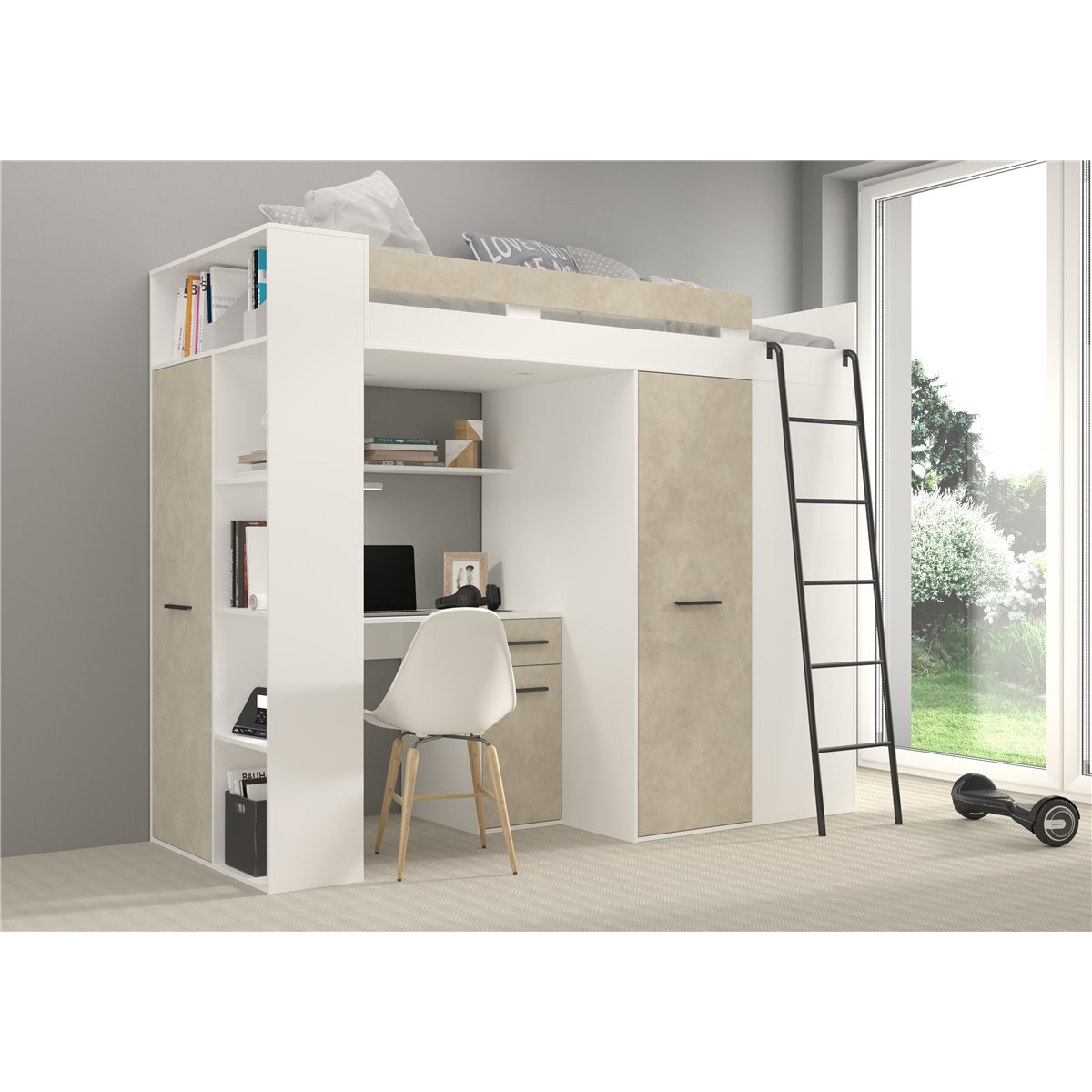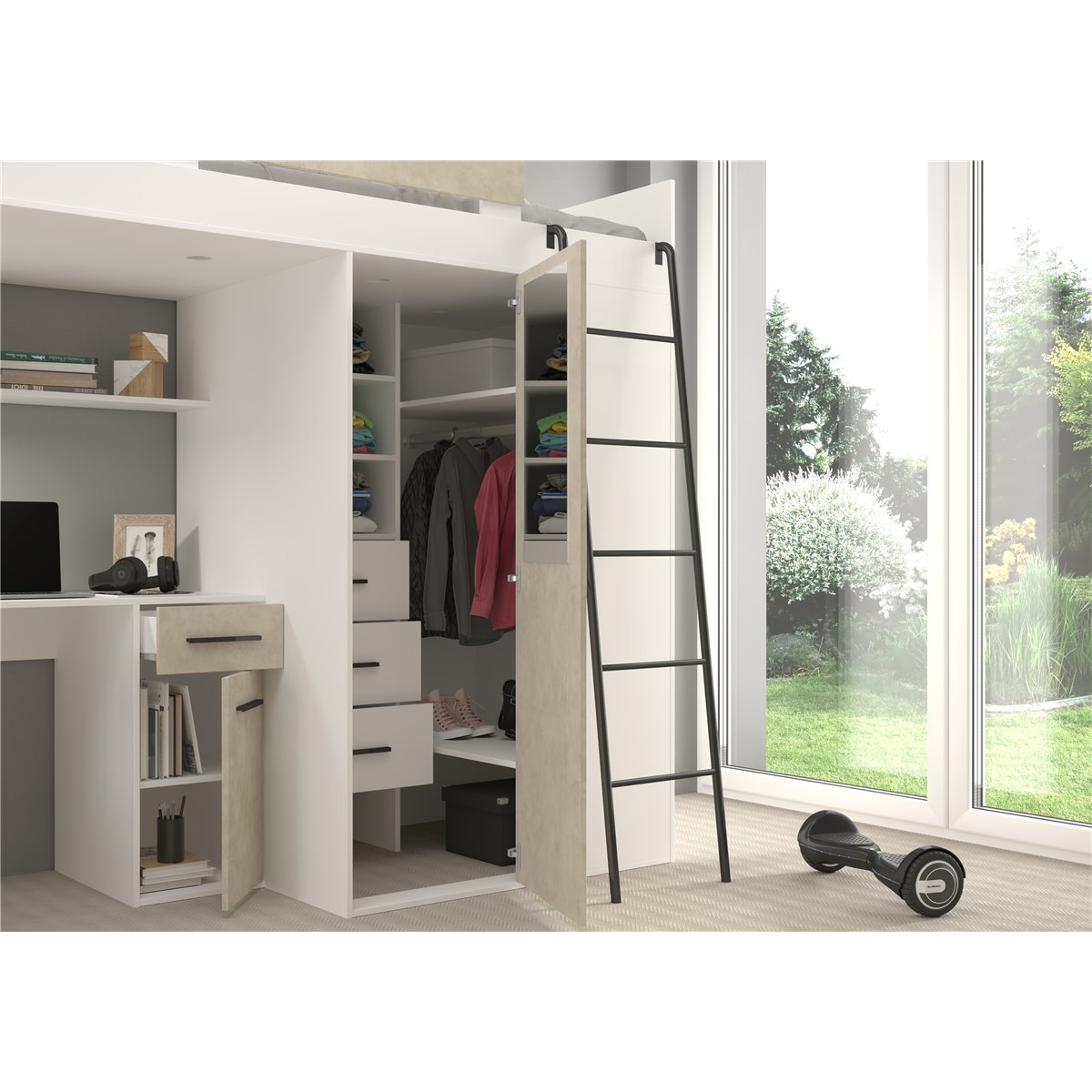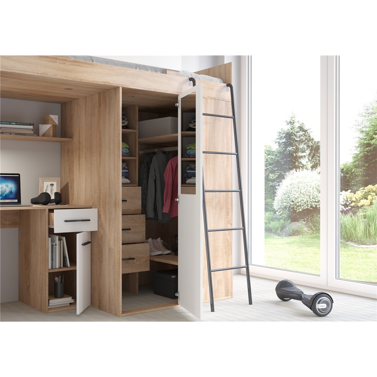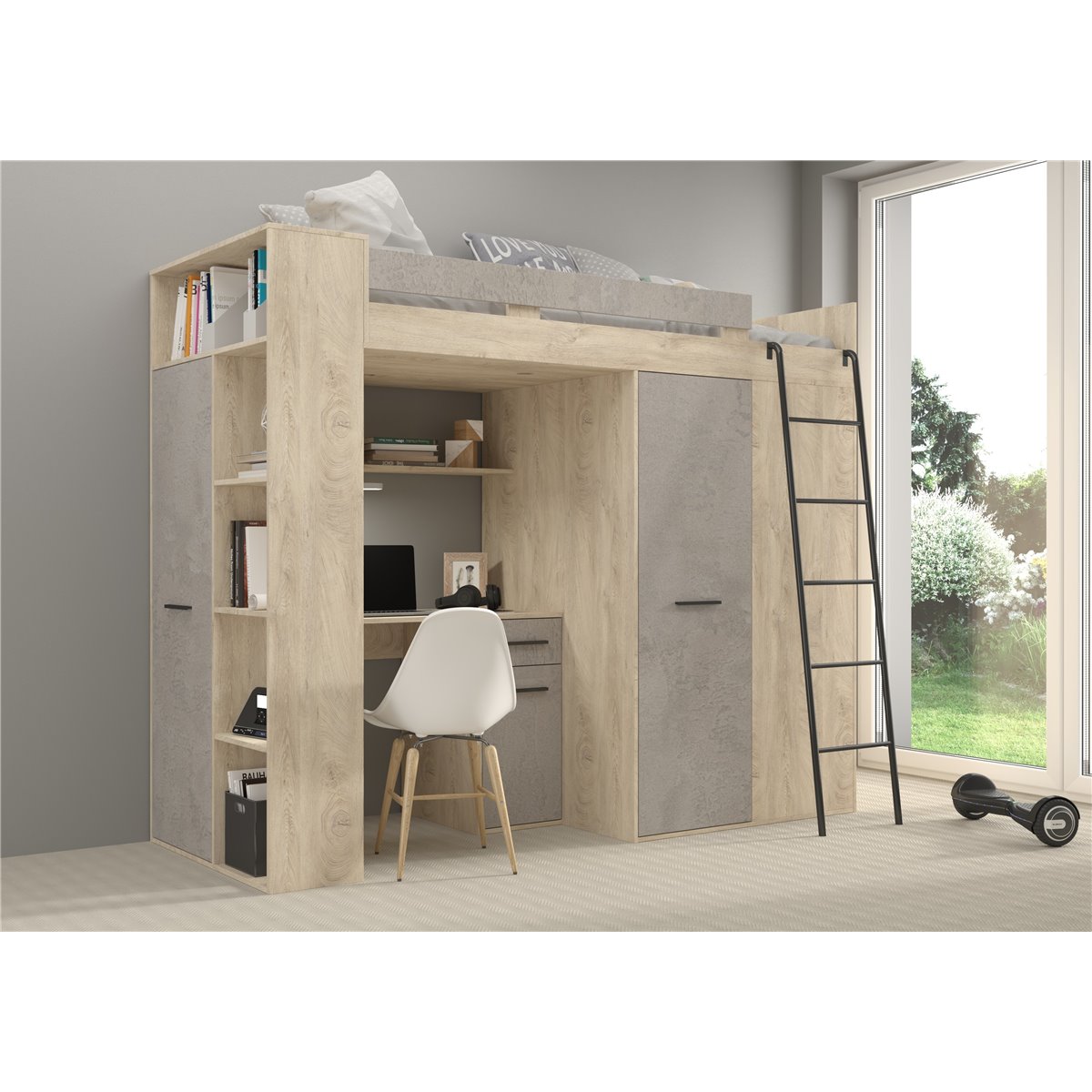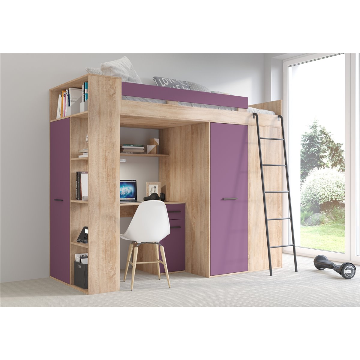 VERANA to świetna propozycja do niewielkiej sypialni dziecka. W skład bryły wchodzą najpotrzebniejsze elementy takie jak pojemna szafa, łóżko o powierzchni spania 80x200 oraz biurko. Liczne półki oraz szafki pomogą utrzymać porządek, a dzięki kolorystyce do wyboru dopasujesz mebel do pokoju chłopca i dziewczynki.