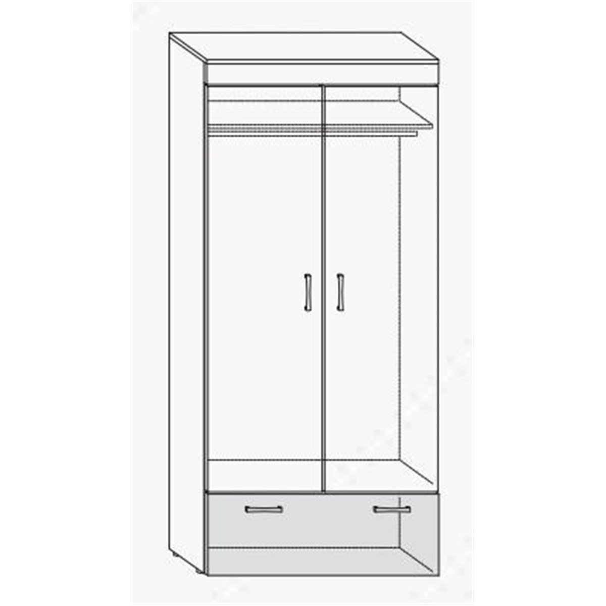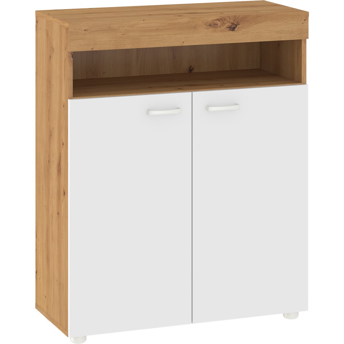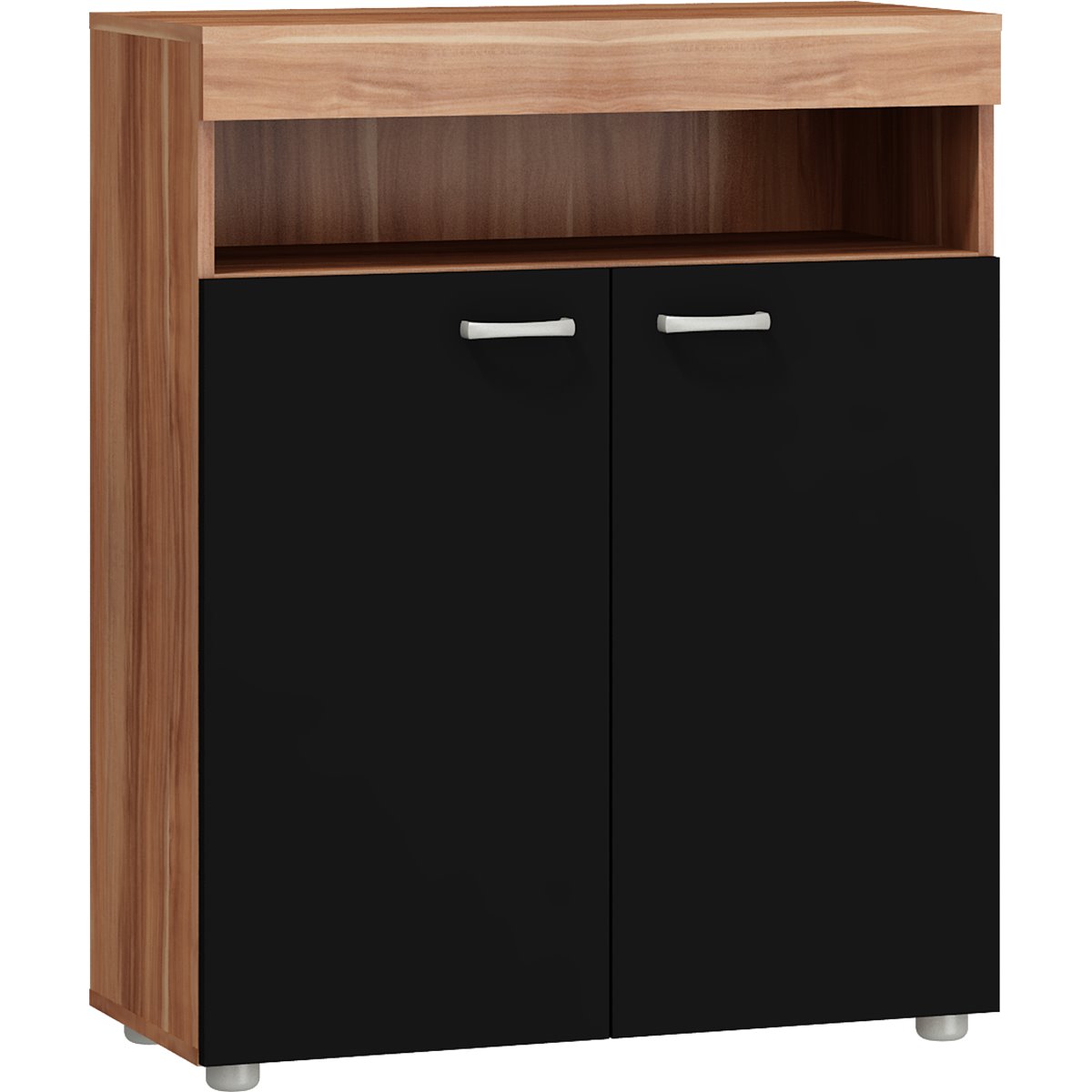 Komoda MAX wyposażona została w 2-drzwiowy front. Pod blatem znajduje się półka, którą możesz przeznaczyć na dowolne przedmioty. Uchwyty wykonane zostały z tworzywa sztucznego w kolorze satyny.