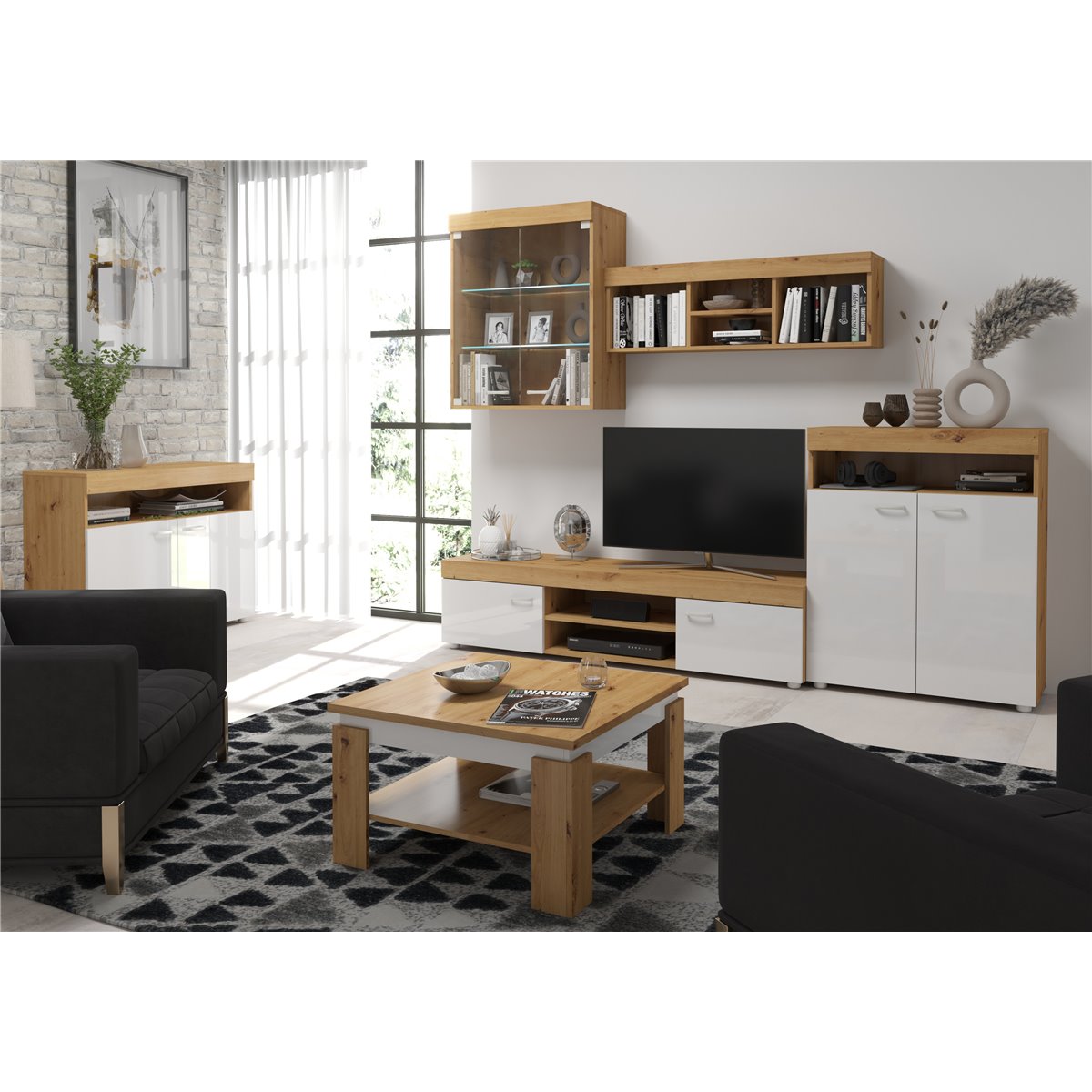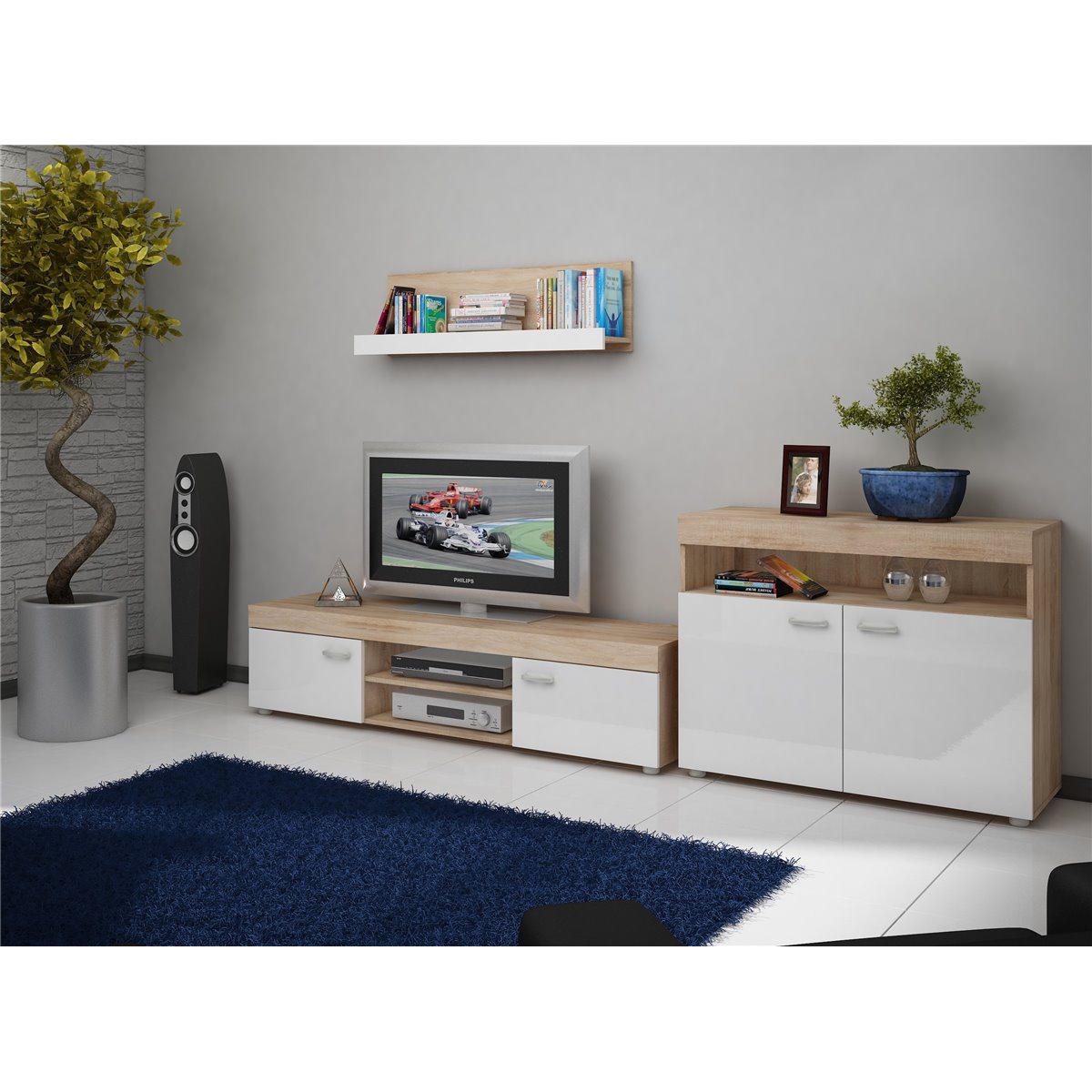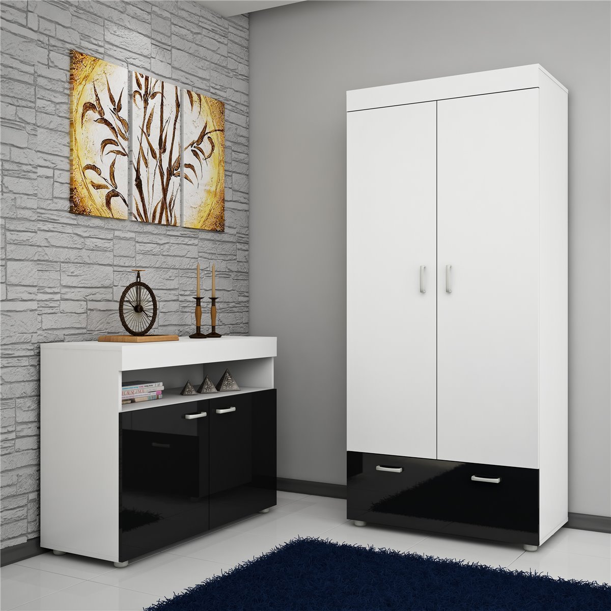 Komoda MAX wyposażona została w 2-drzwiowy front. Pod blatem znajduje się półka, którą możesz przeznaczyć na dowolne przedmioty. Uchwyty wykonane zostały z tworzywa sztucznego w kolorze satyny.