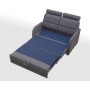 Sofa WIBARO wyposażona jest w regulowane zagłówki, które umożliwiają dopasowanie podparcia szyi i głowy do indywidualnych potrzeb użytkownika, zapewniając maksymalny komfort podczas odpoczynku. Funkcja rozkladania systemem wózek sprawia, że sofa może szybko i łatwo zamienić się w wygodne łóżko, idealne do codziennego użytku lub okazjonalnych noclegów. Dzięki temu jest to bardzo praktyczne rozwiązanie do mniejszych przestrzeni.